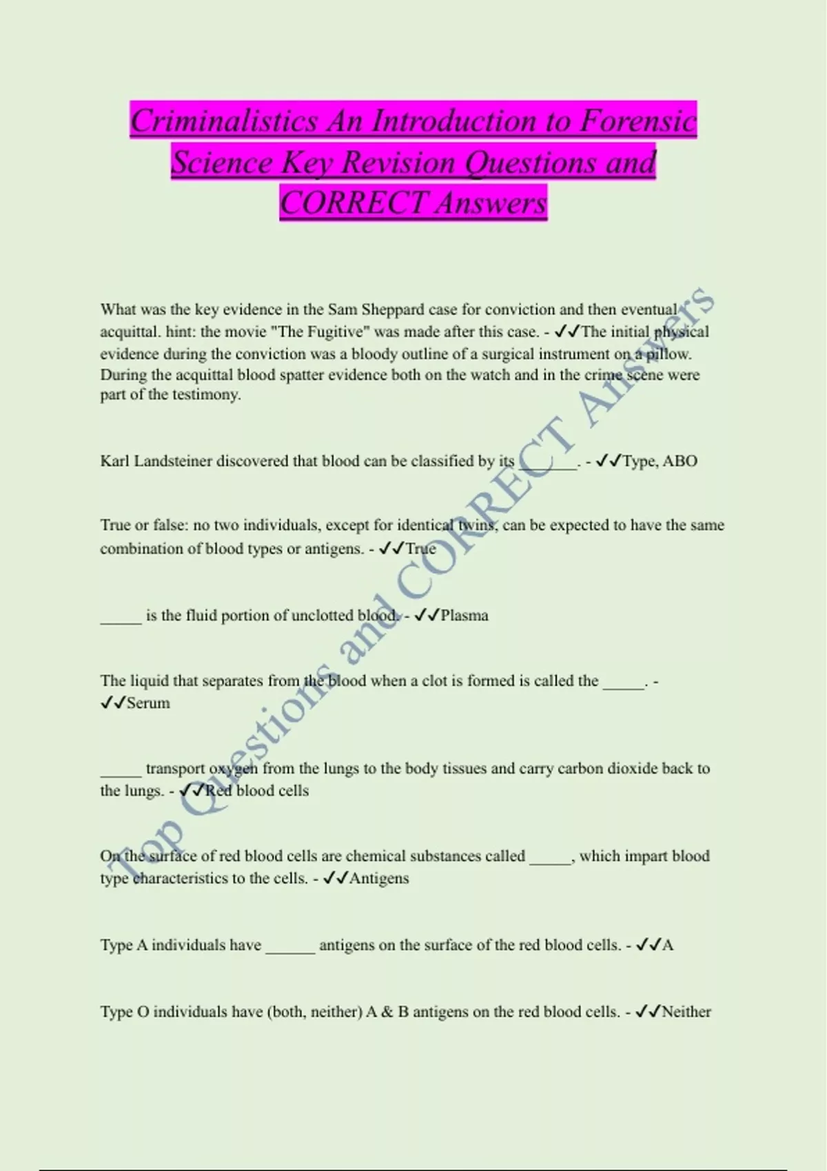 Criminalistics An Introduction to Forensic Science Key Revision Questions and CORRECT Answers