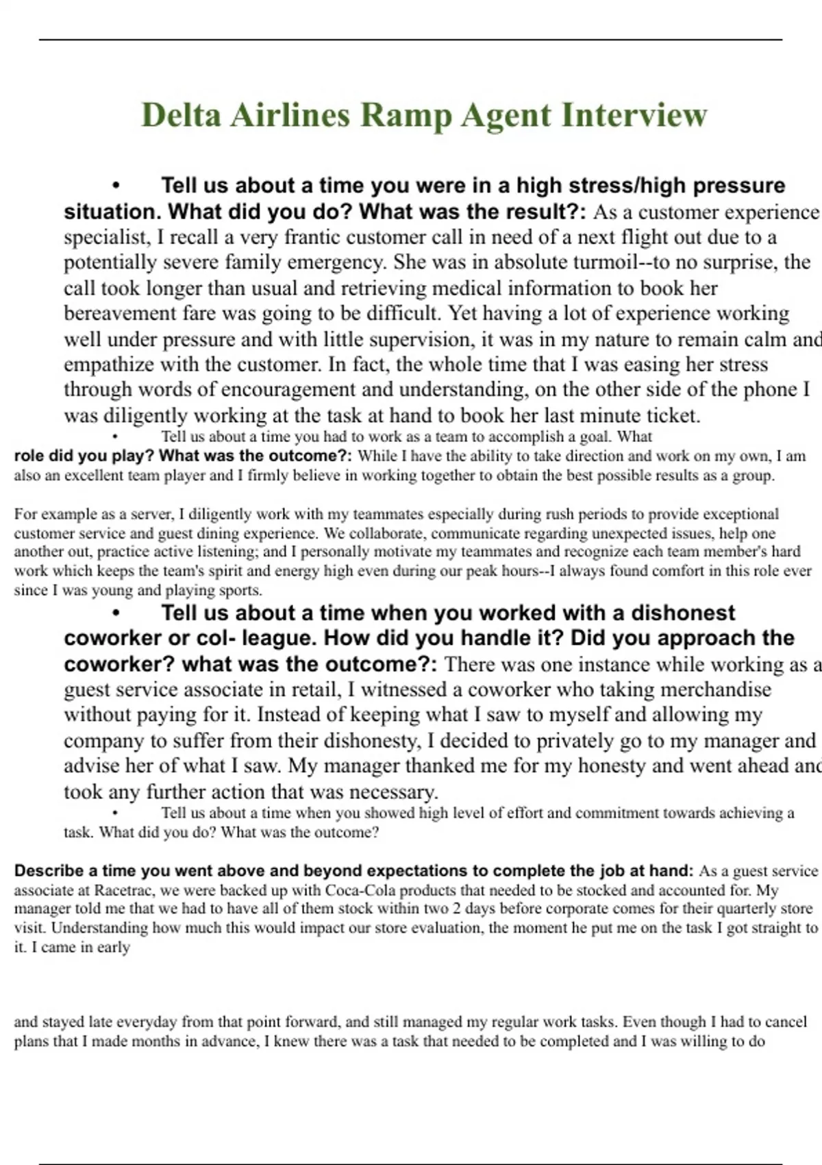 Delta Airlines Ramp Agent Interview