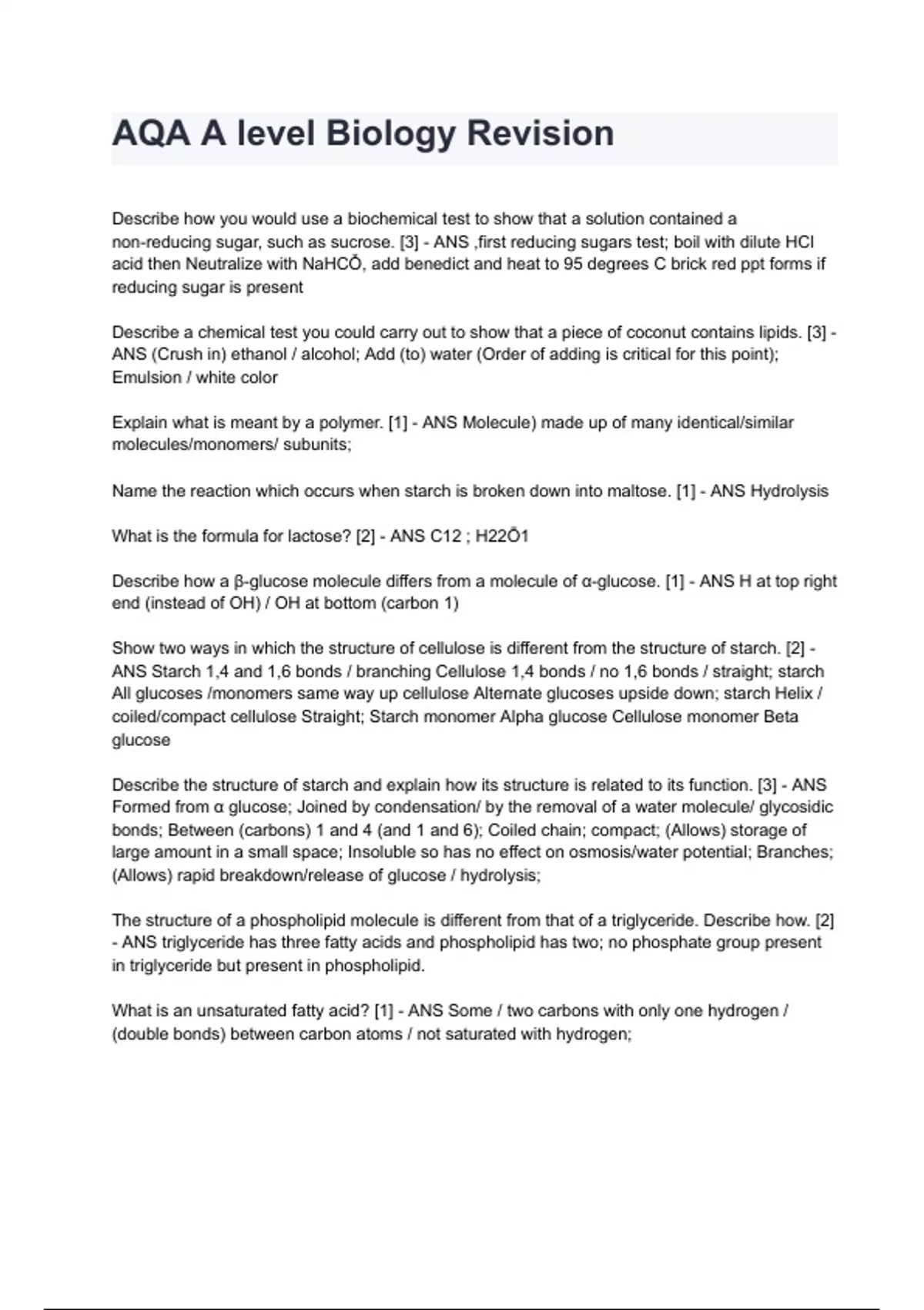 AQA A level Biology Revision 2024 Questions With Graded Solutions.
