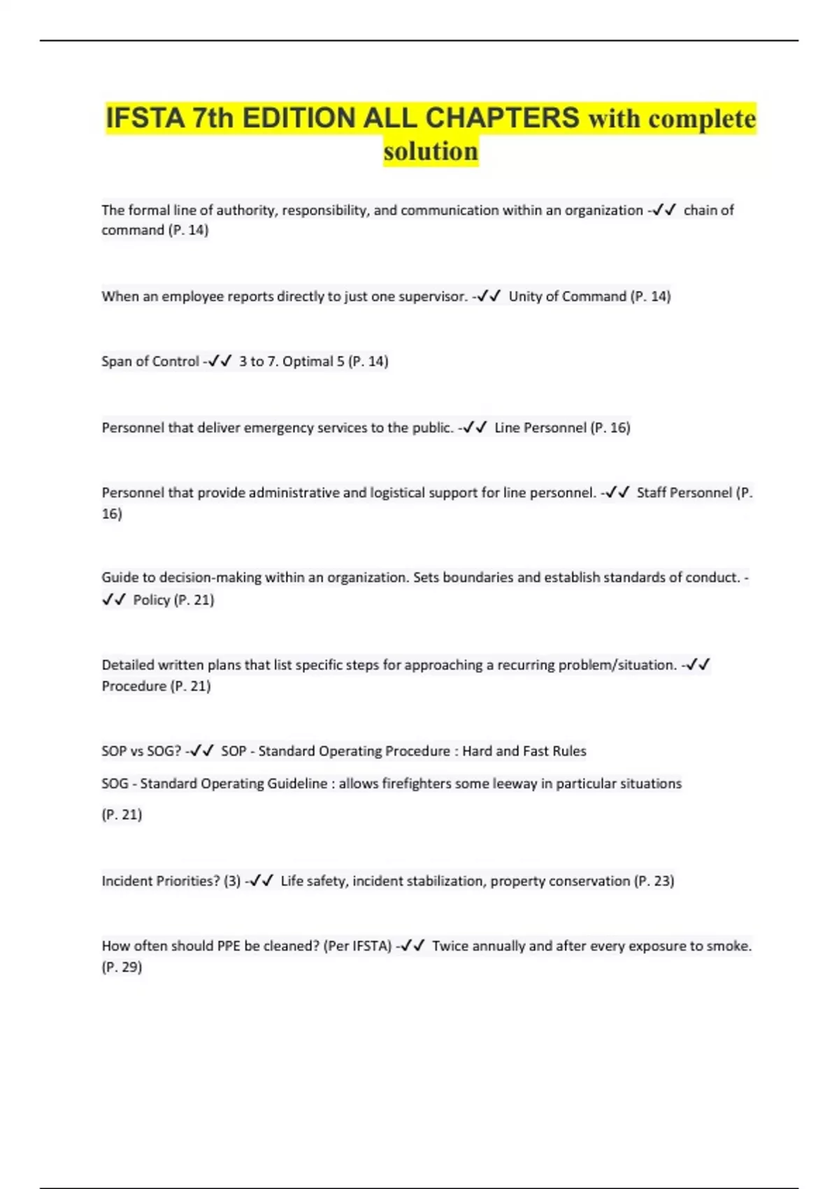 IFSTA 7th EDITION ALL CHAPTERS with complete solution