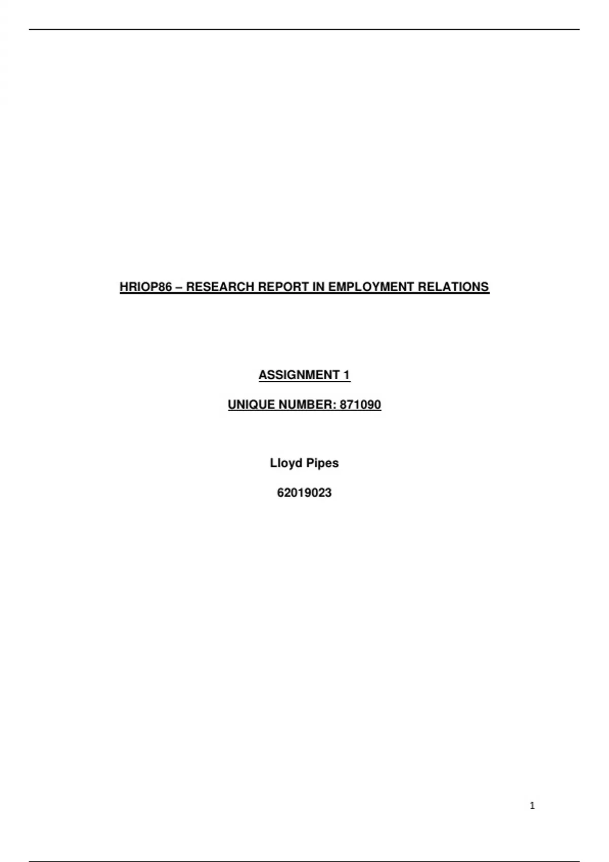 HRIOP86 – RESEARCH REPORT IN EMPLOYMENT RELATIONS