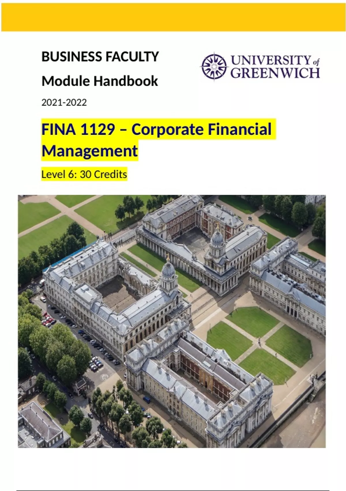 FINA 1129 – Corporate Financial Management