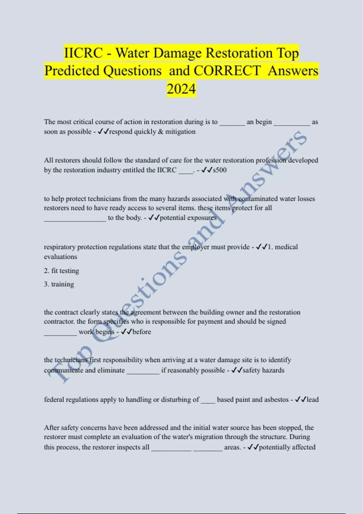 IICRC - Water Damage Restoration Top Predicted Questions and CORRECT Answers 2024
