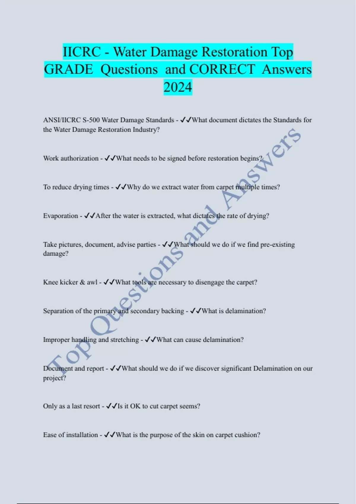 IICRC - Water Damage Restoration Top GRADE Questions and CORRECT Answers 2024