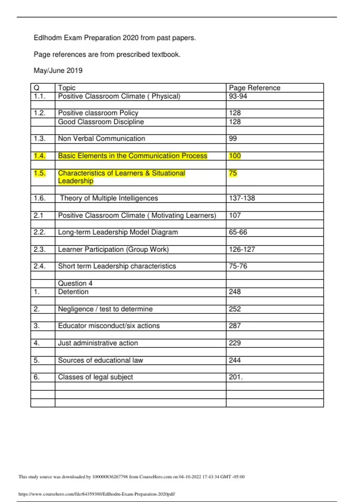 edlhodm exam preparation 2020 from past papers