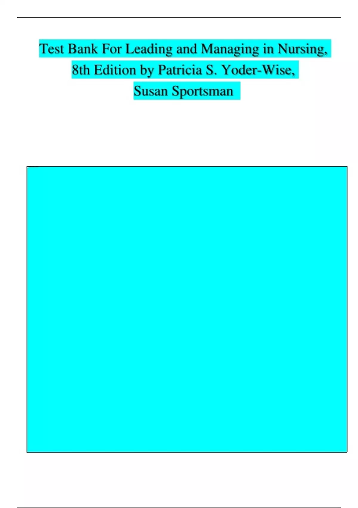 TEST BANK For Leading and Managing in Nursing, 8th Edition by Patricia S. Yoder-Wise, Susan Sportsman All Chapters 1 - 25, Complete Newest Version