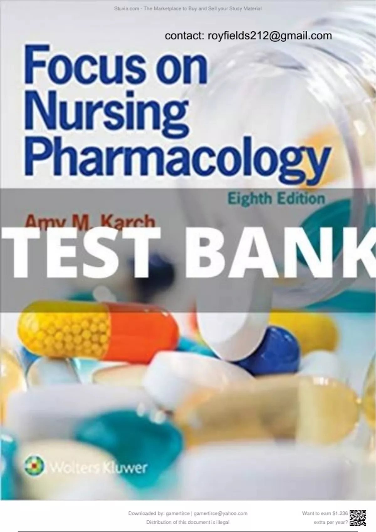 Test Bank - Focus on Nursing Pharmacology (8th Edition by Karch)