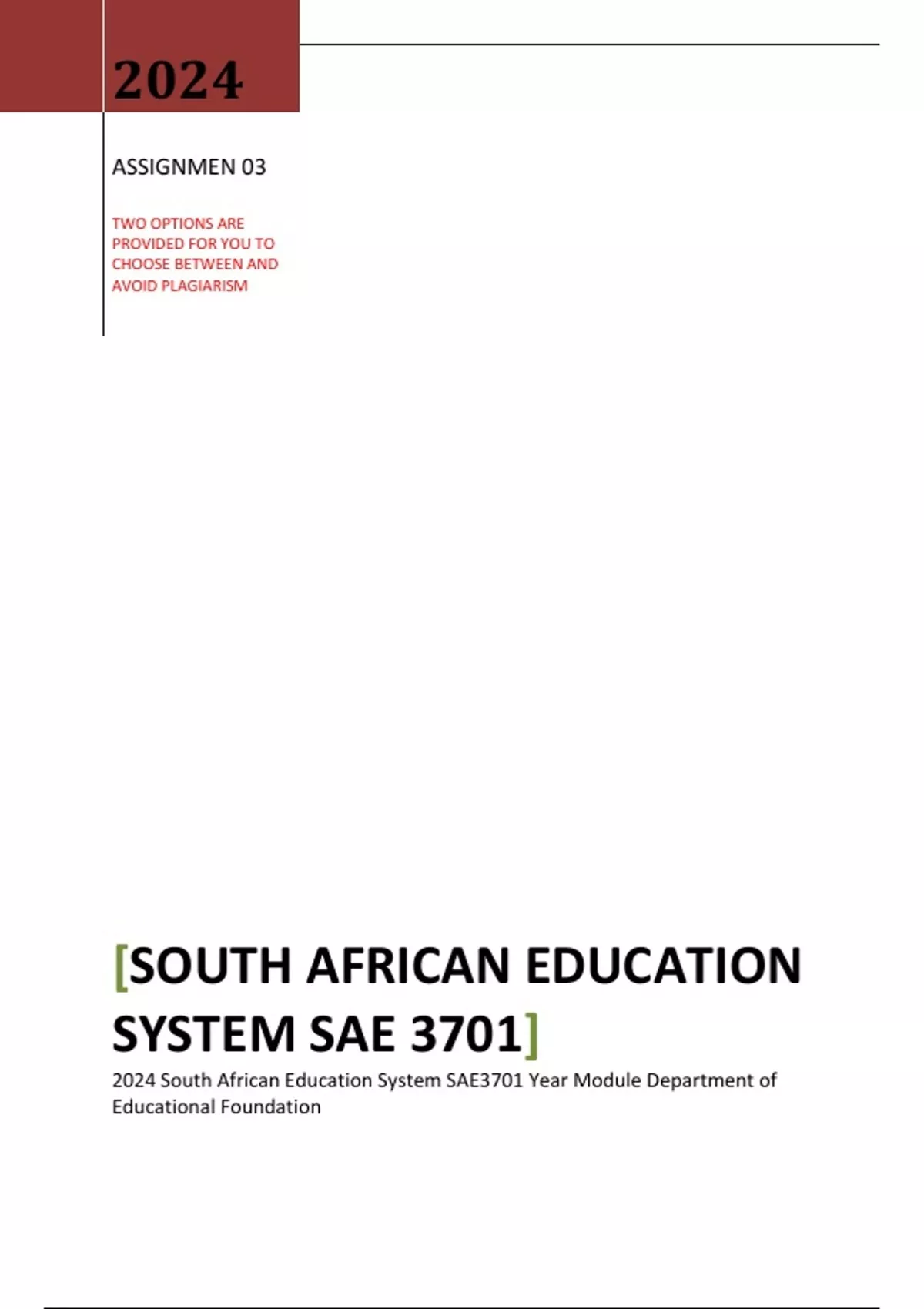 2024 South African Education System SAE3701 Year Module Department of