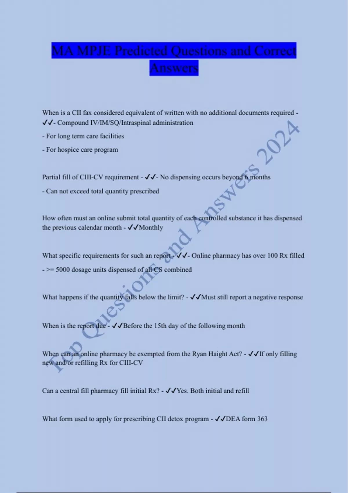 MA MPJE Predicted Questions and Correct Answers