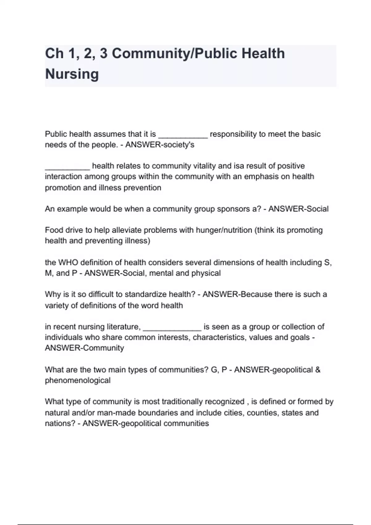 - Ch 1, 2, 3 Community/Public Health Nursing