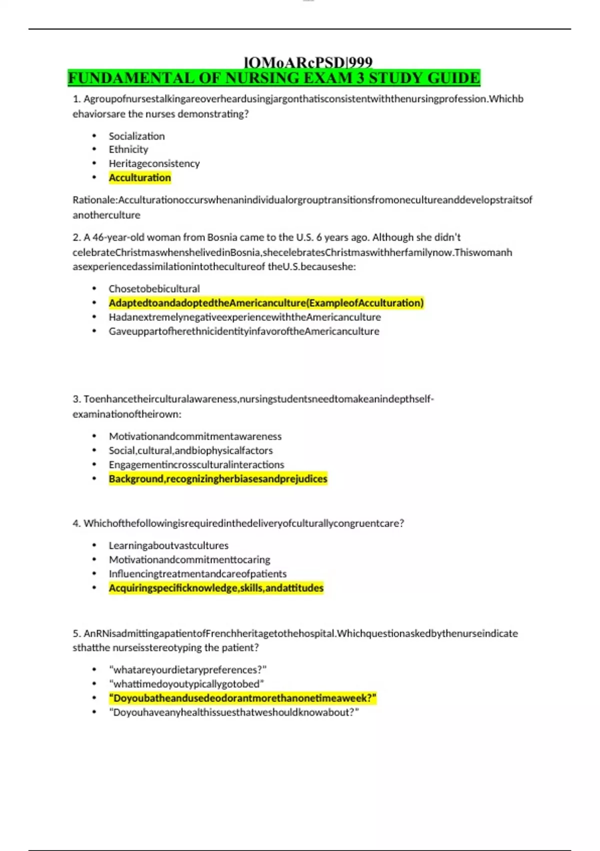 FUNDAMENTAL OF NURSING EXAM 3 STUDY GUIDE