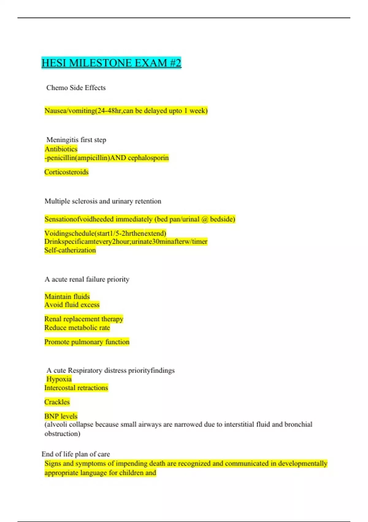 HESI MILESTONE EXAM #2