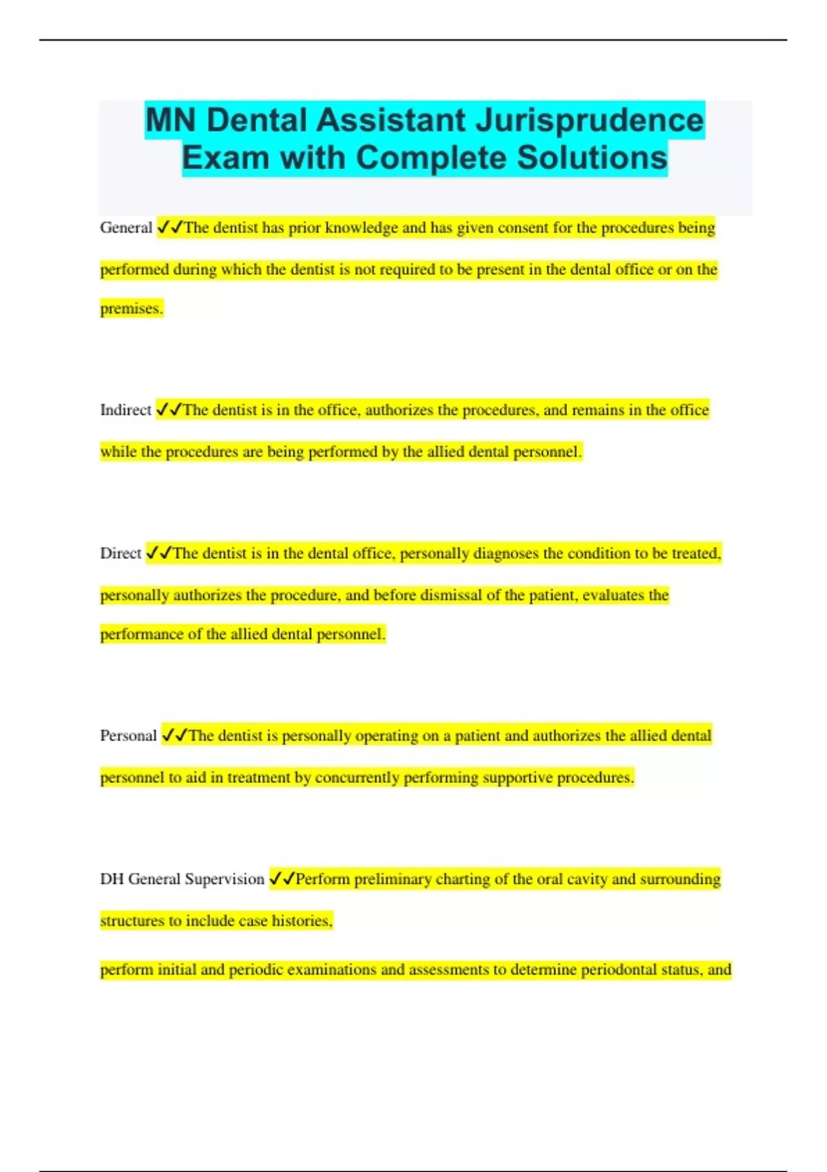 MN Dental Assistant Jurisprudence Exam with Complete Solutions