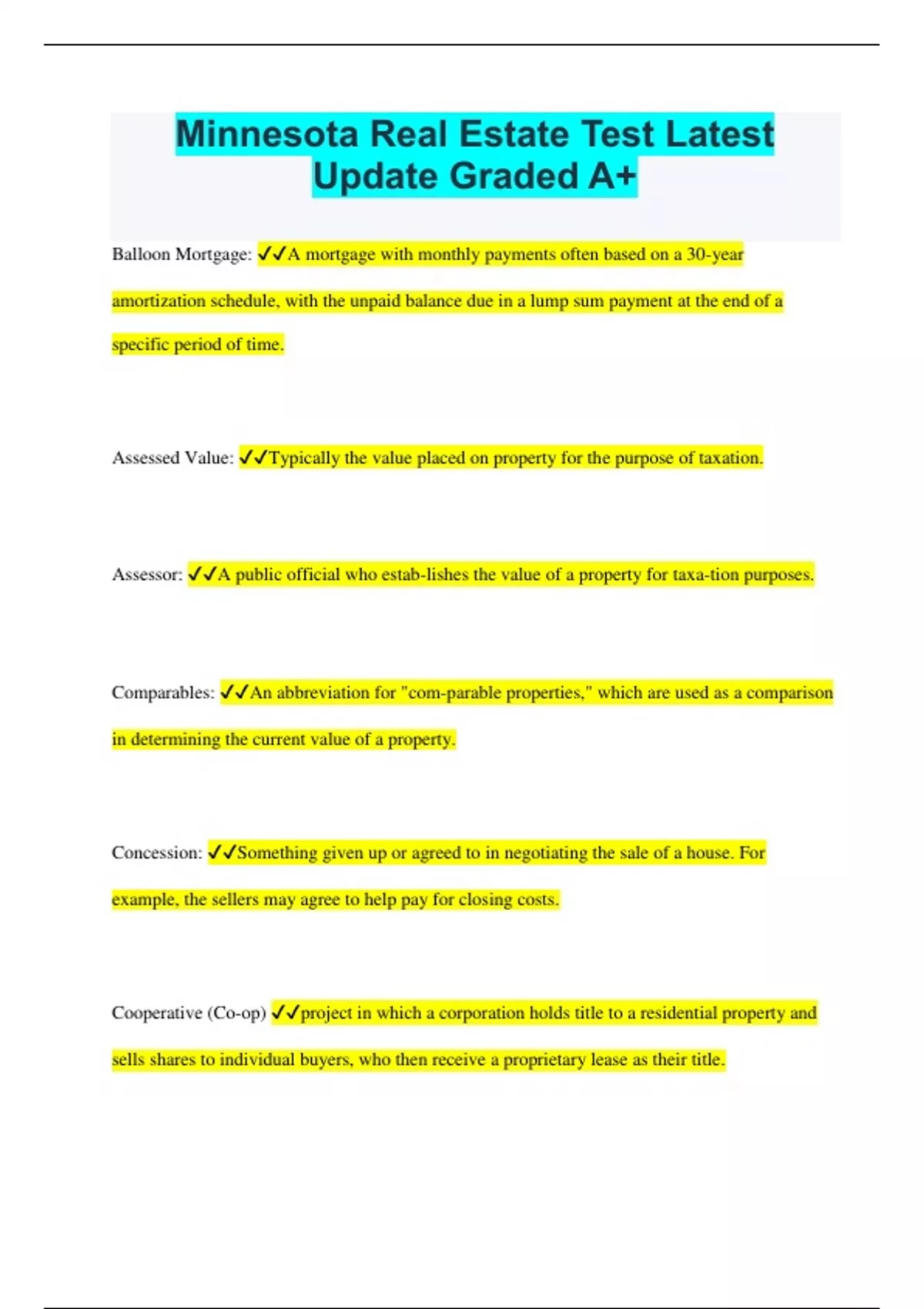 Minnesota Real Estate Test Latest Update Graded A+