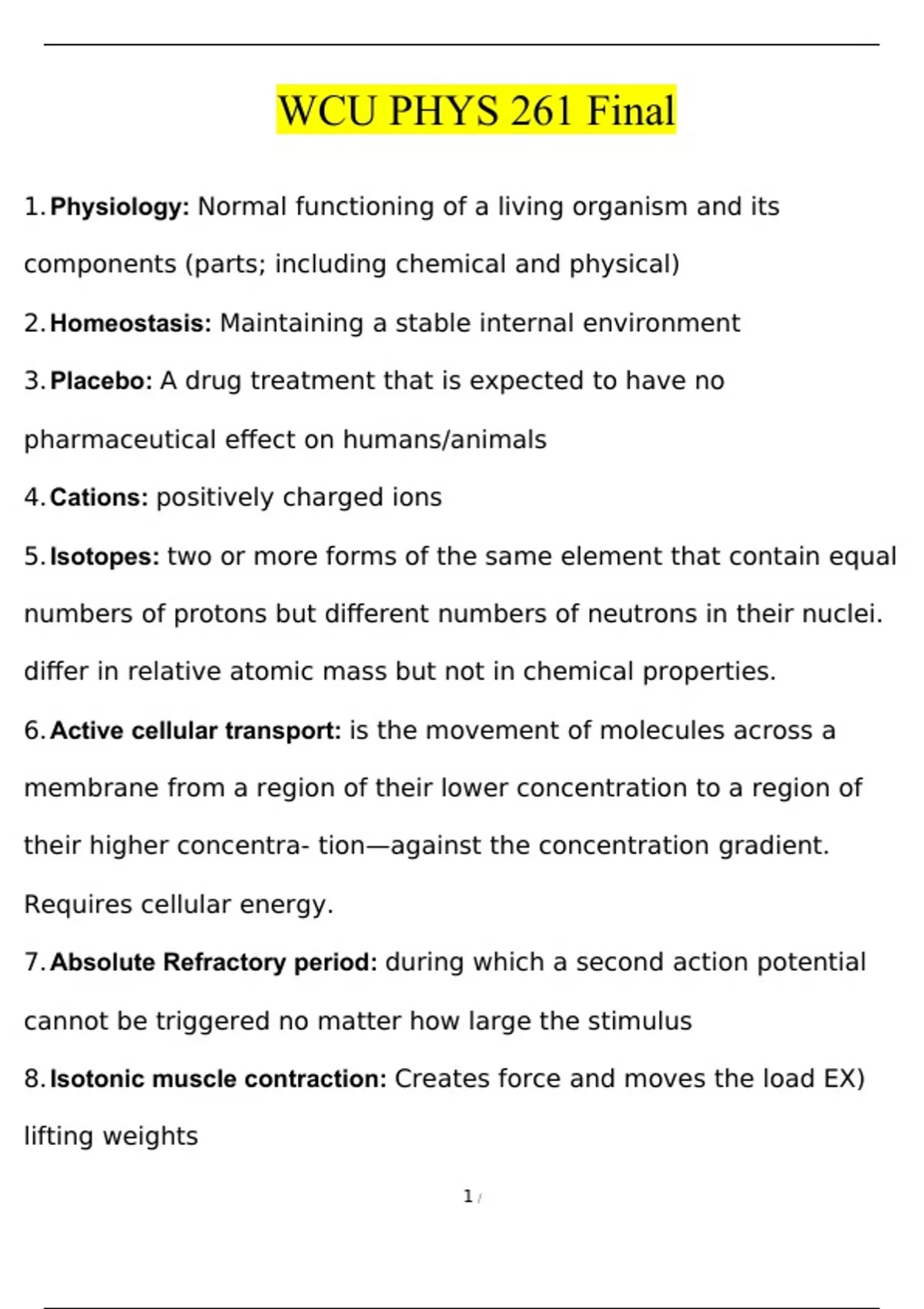 1.Physiology: Normal functioning of a living organism and its components (parts; including chemical and physical)