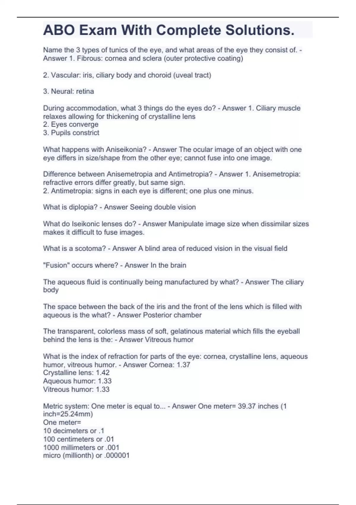 abo exam with complete solutions