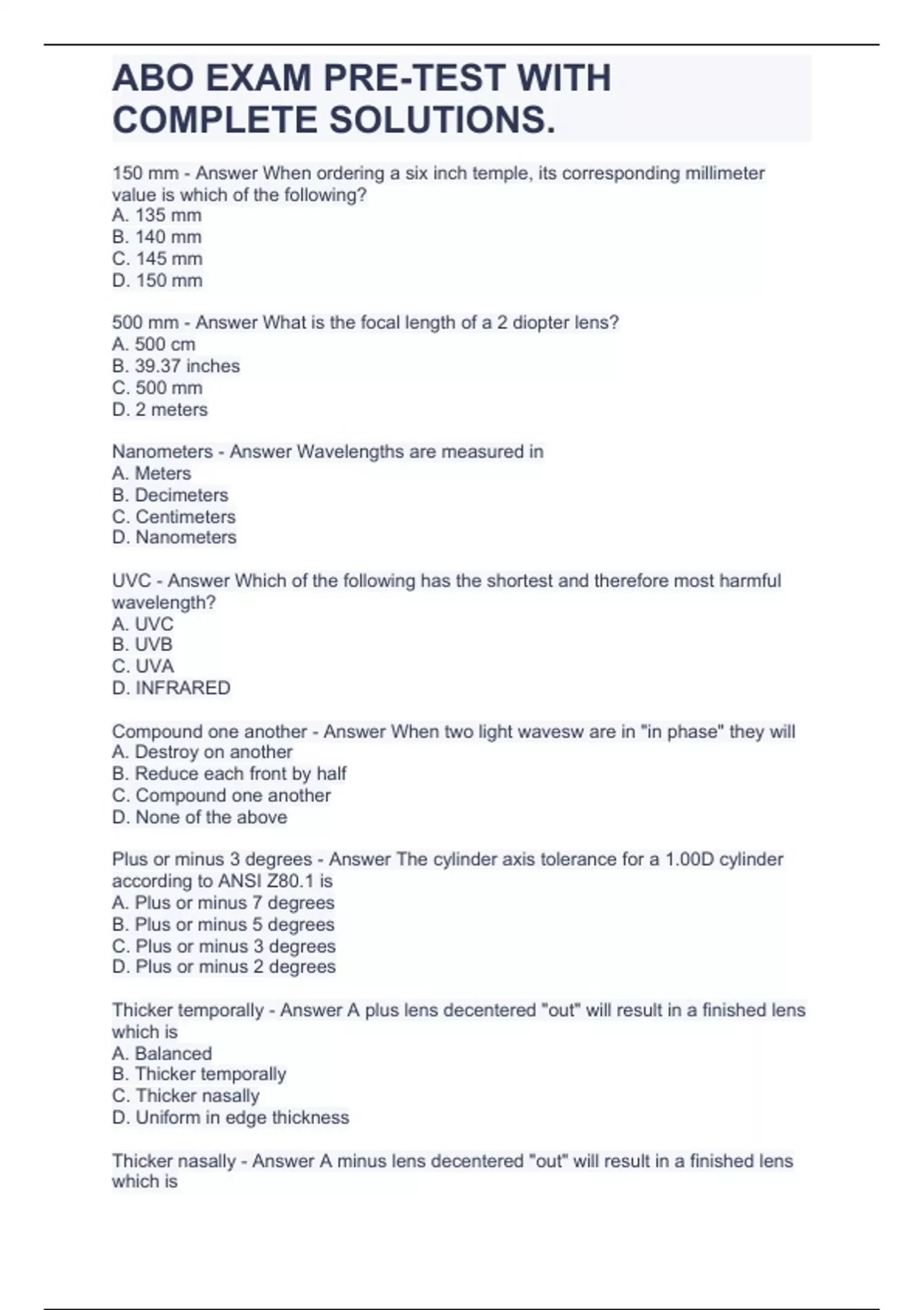 ABO EXAM PRE-TEST WITH COMPLETE SOLUTIONS..