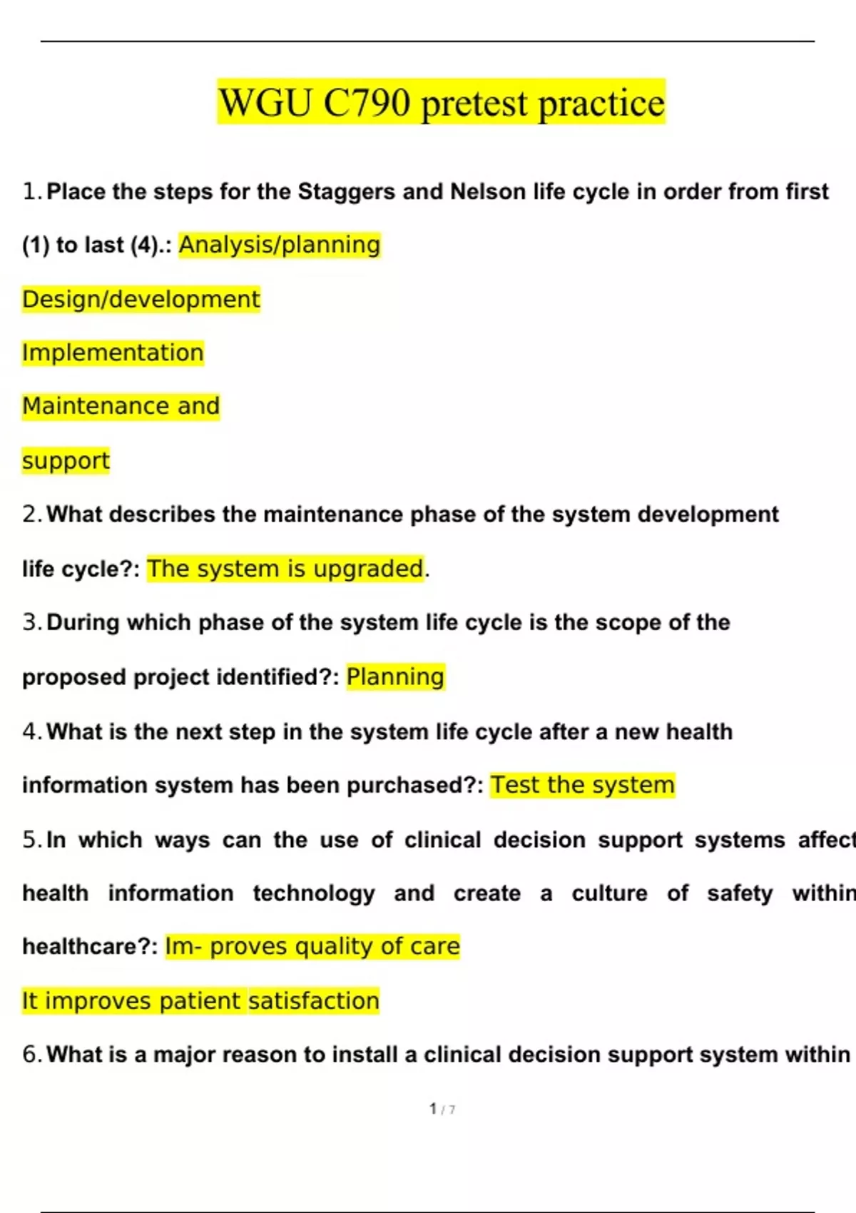 WGU C790 pretest practice Nursing Informatics Exam Questions and Answers (2024 / 2025) (Verified Answers)