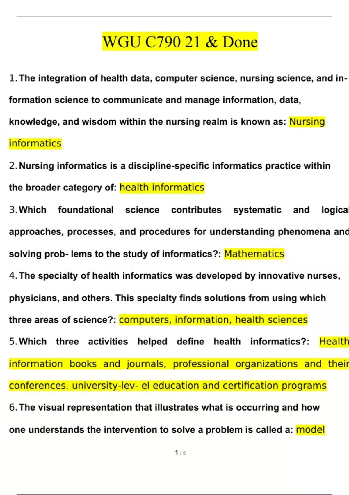 WGU C790 21 & Done Nursing Informatics Exam Questions and Answers (2024 / 2025) (Verified Answers)