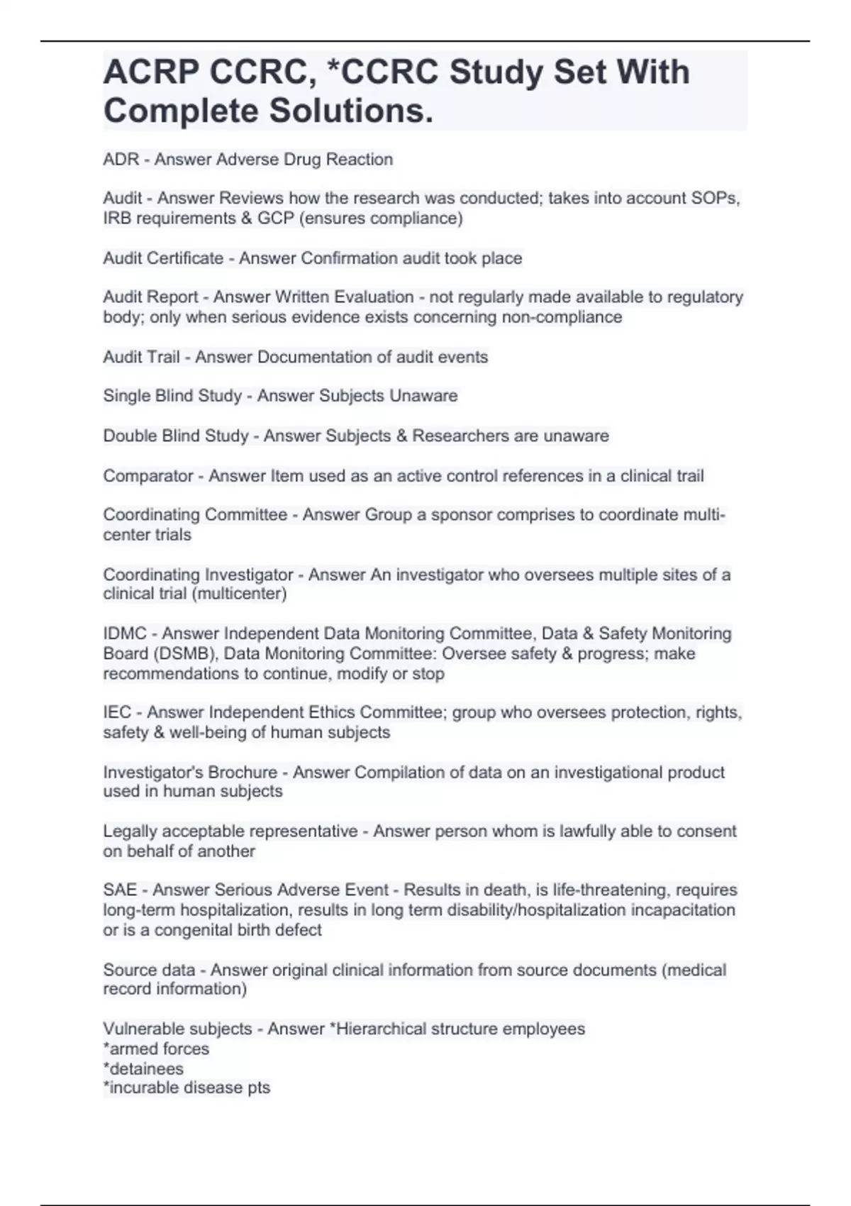 ACRP CCRC, CCRC Study Set With Complete Solutions.