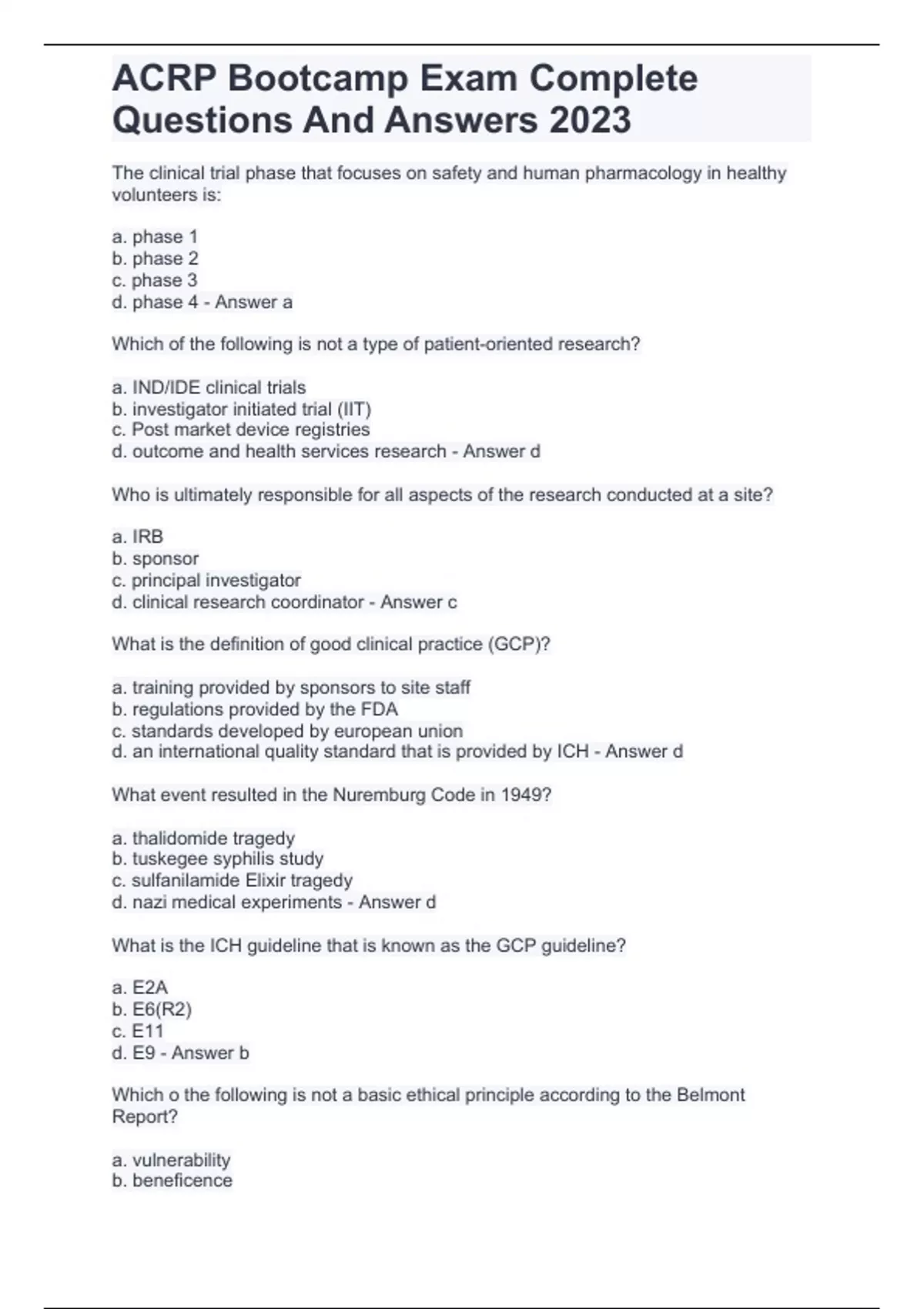 ACRP Bootcamp Exam Complete Questions And Answers 2023.