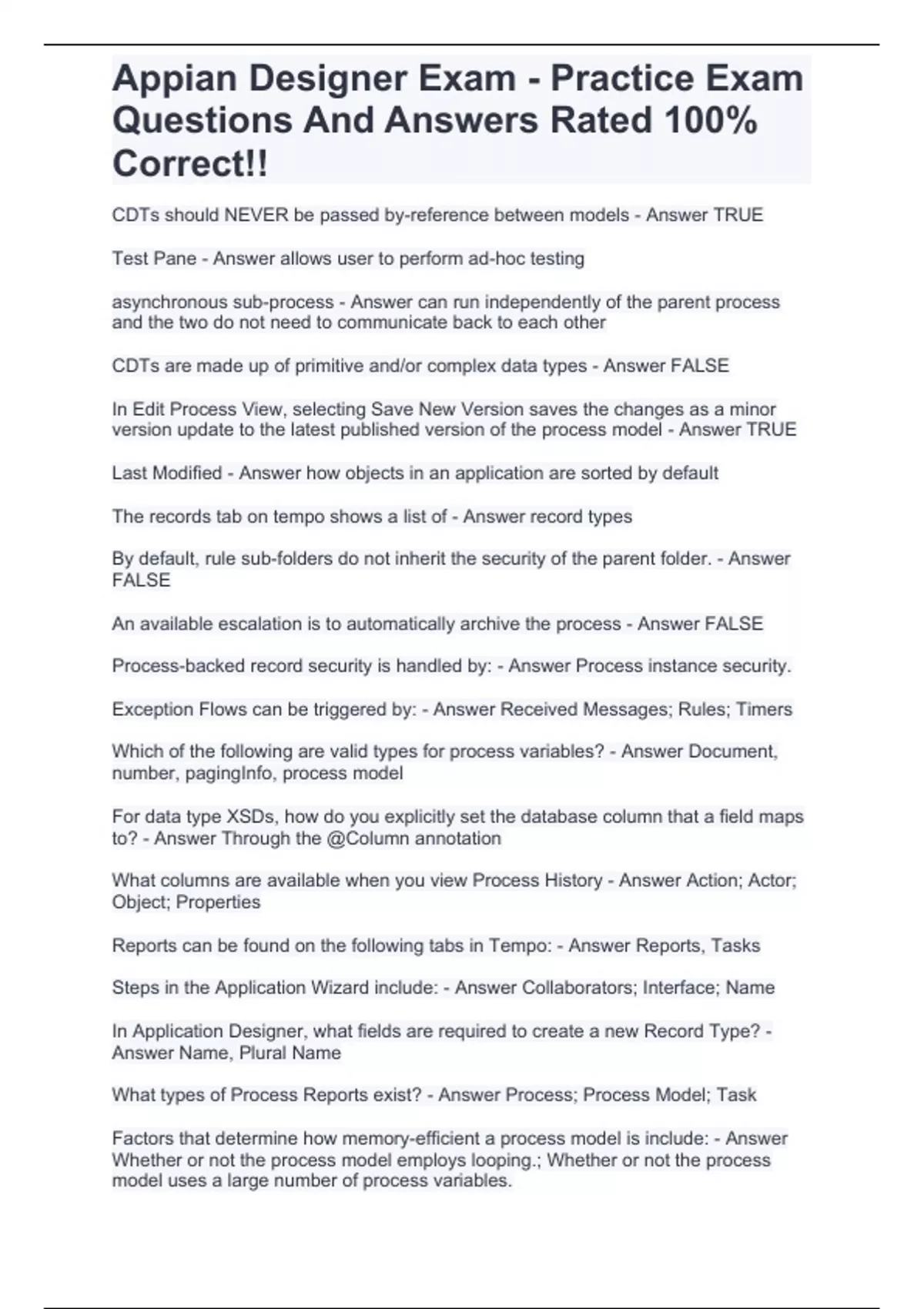Appian Designer Exam - Practice Exam Questions And Answers Rated 100% Correct!!.