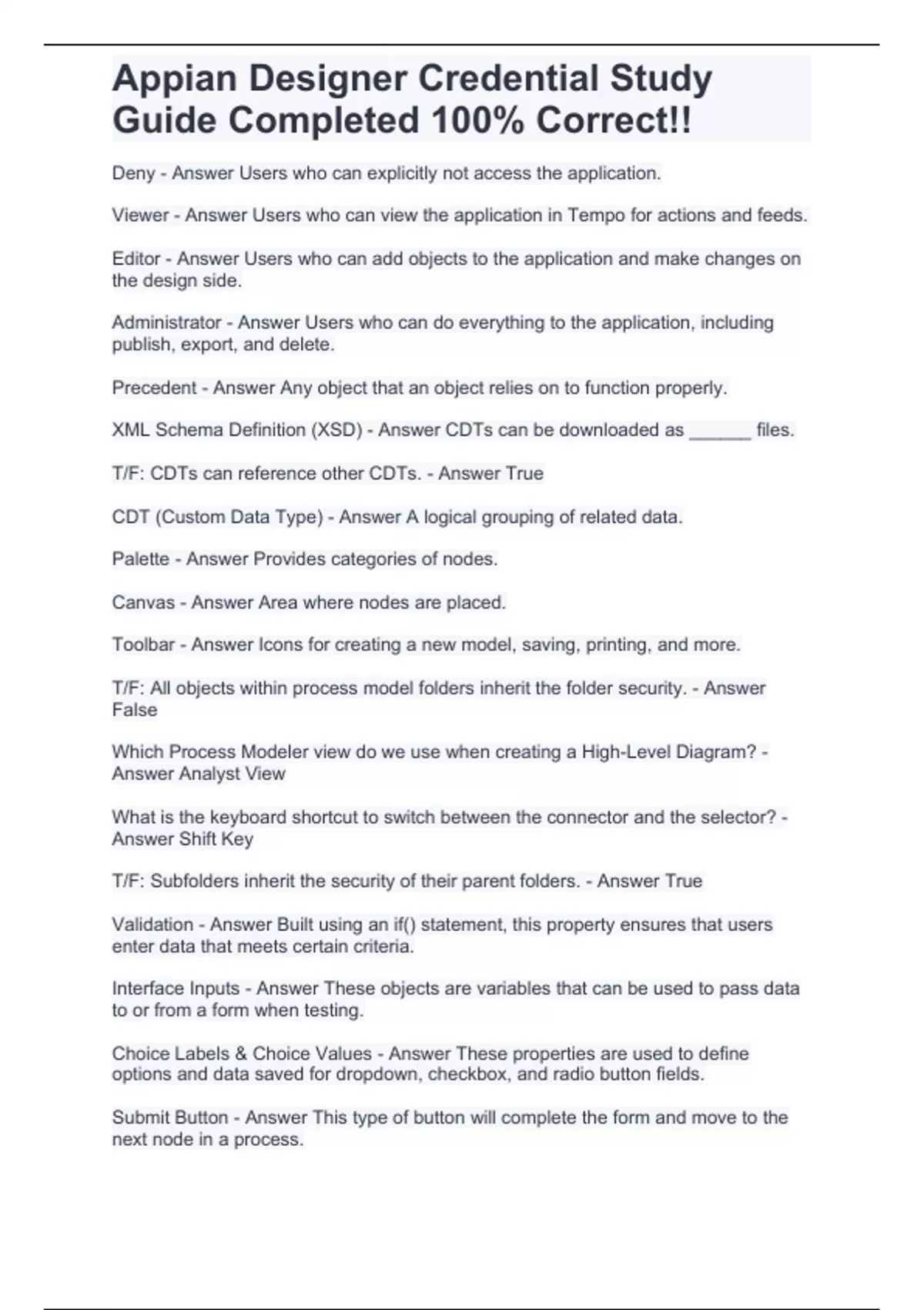 Appian Designer Credential Study Guide Completed 100% Correct!!.