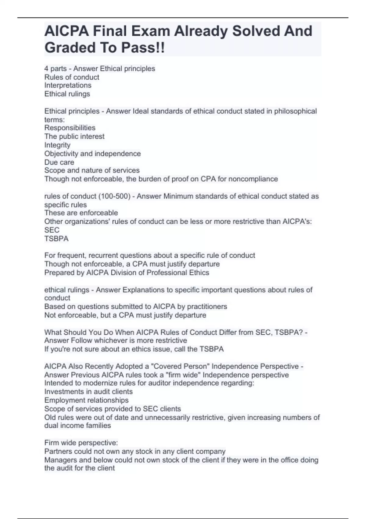 aicpa final exam already solved and graded to pass