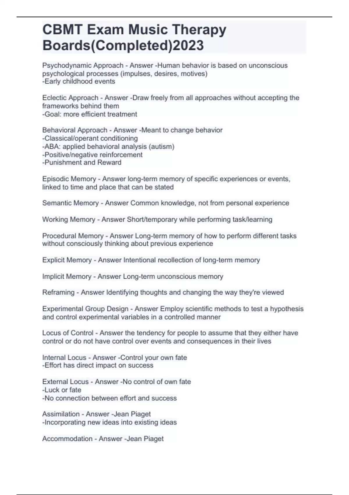 CBMT Exam Music Therapy Boards(Completed)2023.
