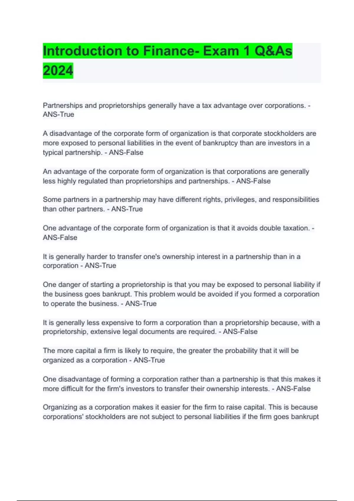 A disadvantage of the corporate form of organization is that corporate stockholders are more exposed to personal liabilities in the event of bankruptcy than are investors in a typical partnership. - ANS-False