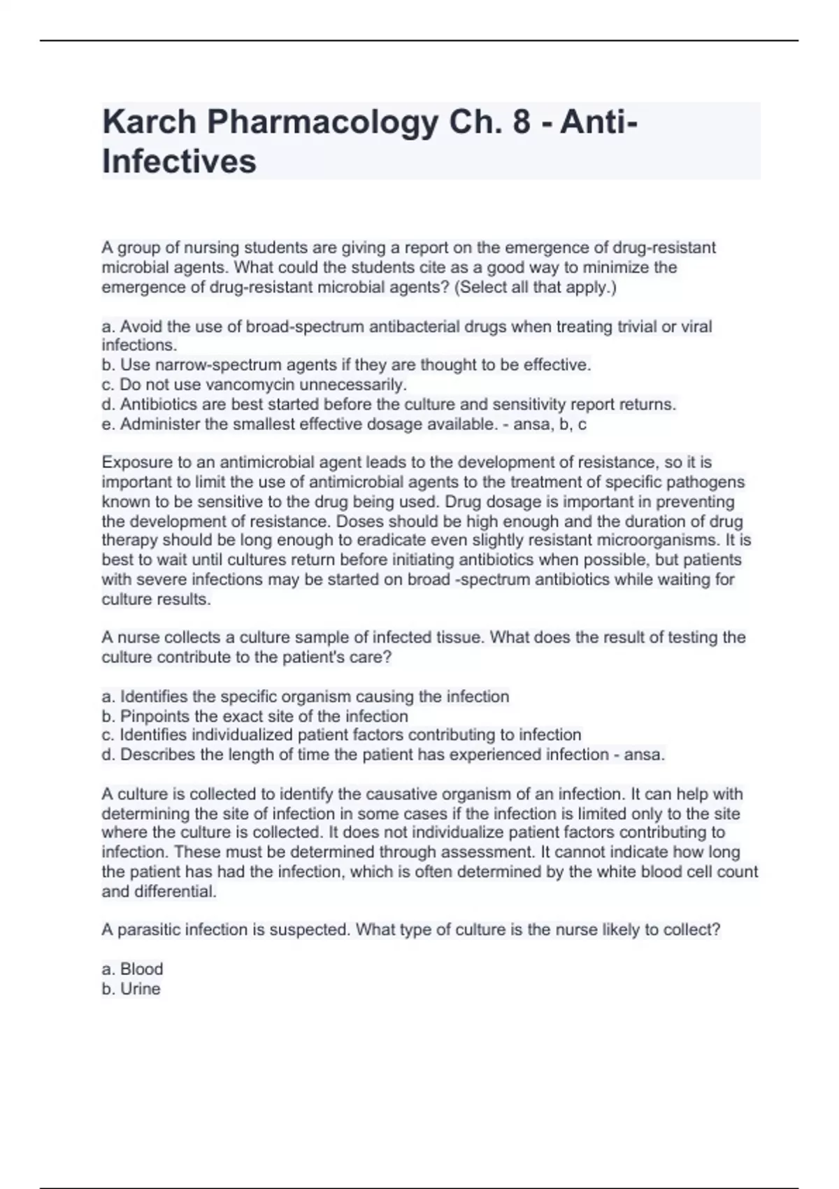 karch pharmacology ch 8 anti infectives