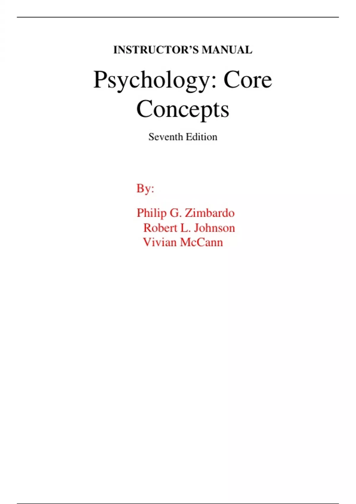 INSTRUCTOR’S MANUAL FOR ZIMBARDO/JOHNSON/MCCANN, PSYCHOLOGY: CORE CONCEPTS, 7TH EDITION||chapter 5:memory||latest edition 2024