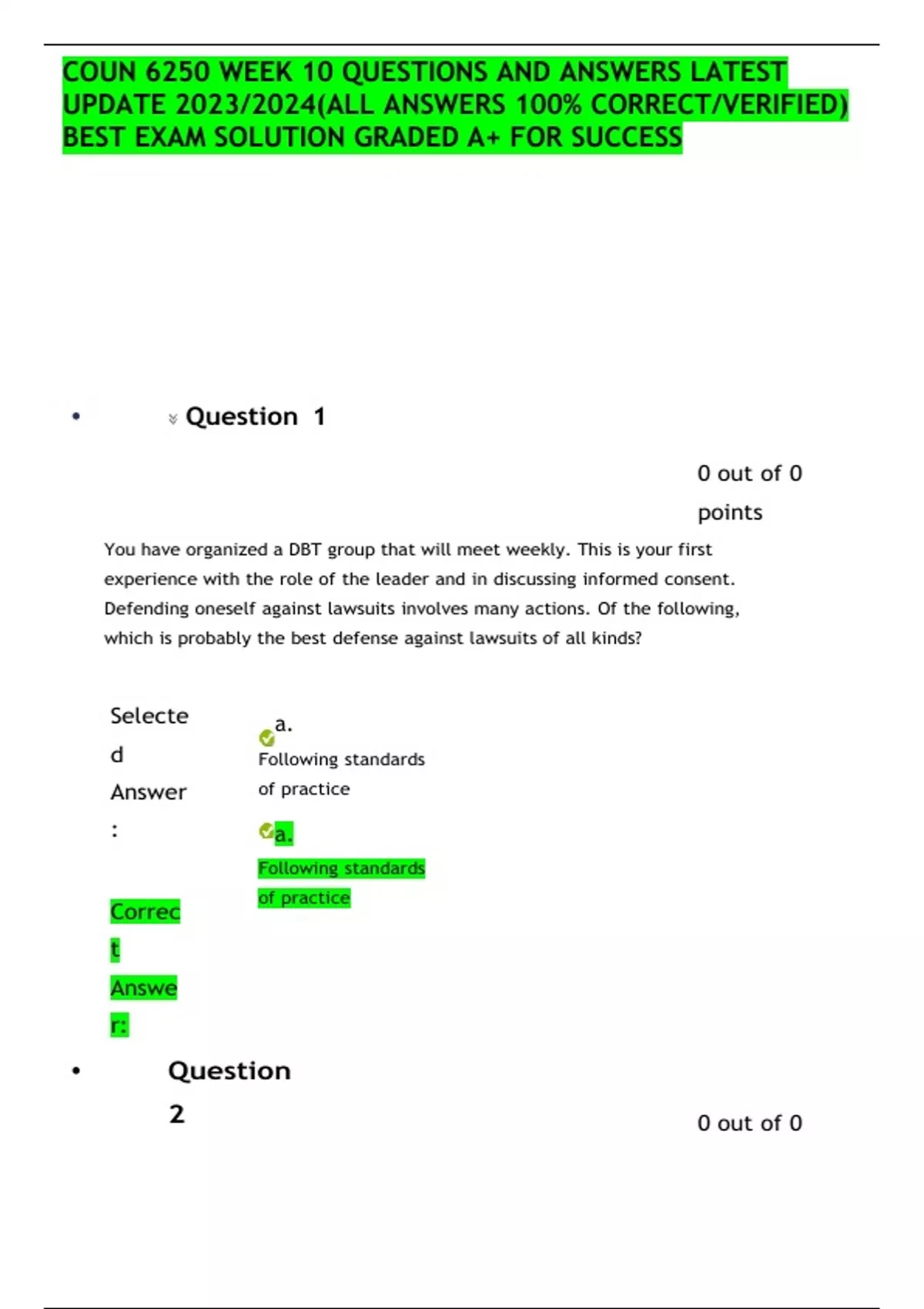 coun 6250 week 10 questions and answers latest upd