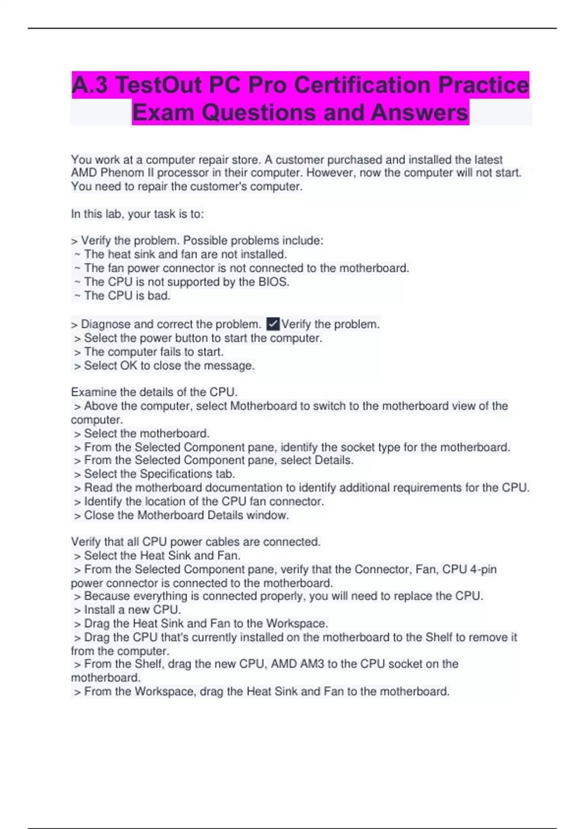 A.3 TestOut PC Pro Certification Practice Exam Questions and Answers