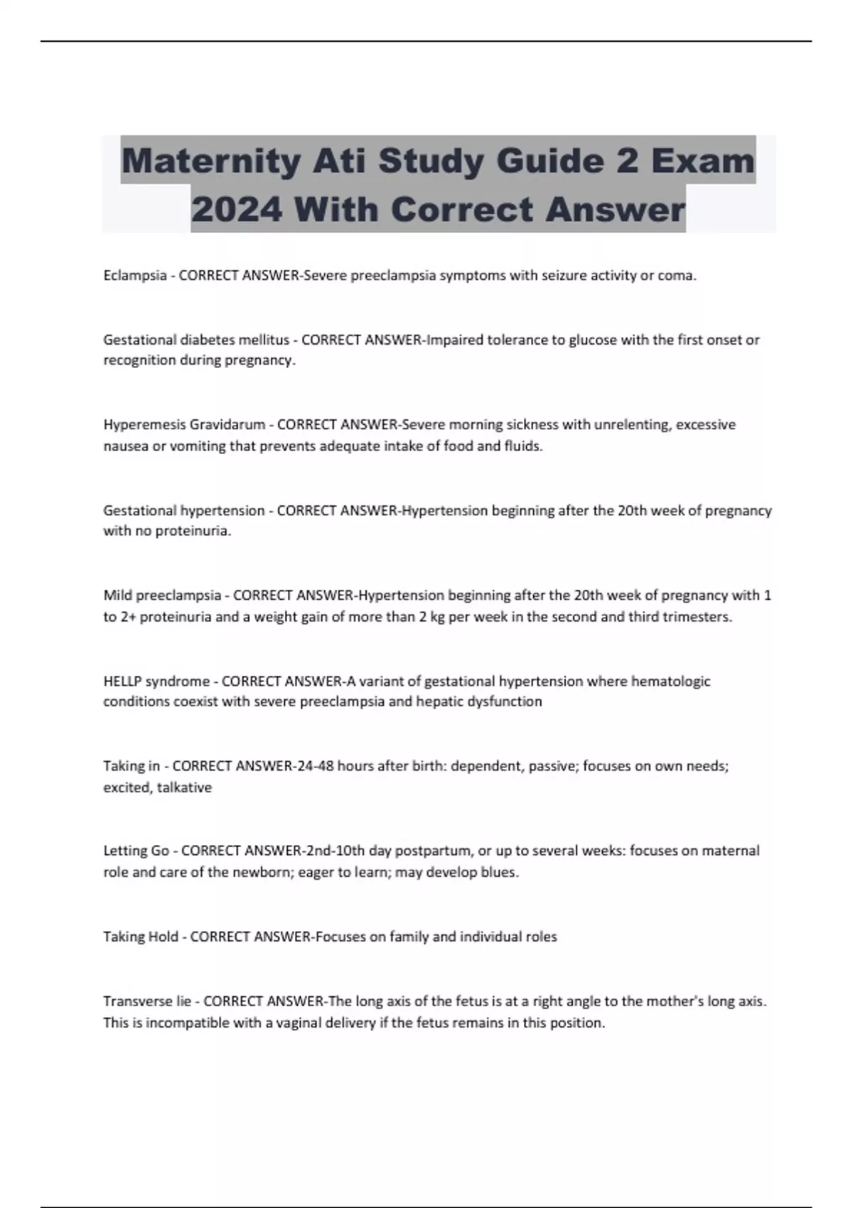 Maternity Ati Study Guide 2 Exam 2024 With Correct Answer