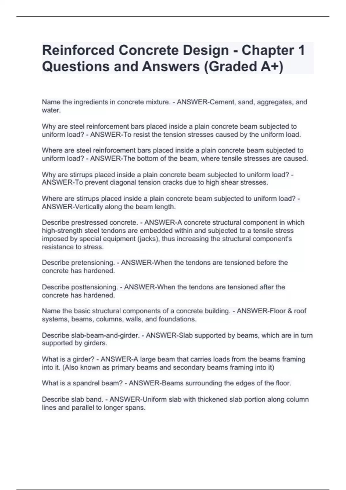 Reinforced Concrete Design - Chapter 1 Questions and Answers (Graded A+) Reinforced Concrete Design - Chapter 1 Questions and Answers (Graded A+) Reinforced Concrete Design - Chapter 1 Questions and Answers (Graded A+) Reinforced Concrete Design - Chapter 1 Questions and Answers (Graded A+) Reinforced Concrete Design - Chapter 1 Questions and Answers (Graded A+) Reinforced Concrete Design - Chapter 1 Questions and Answers (Graded A+) Reinforced Concrete Design - Chapter 1 Questions and Answers (Graded A+)