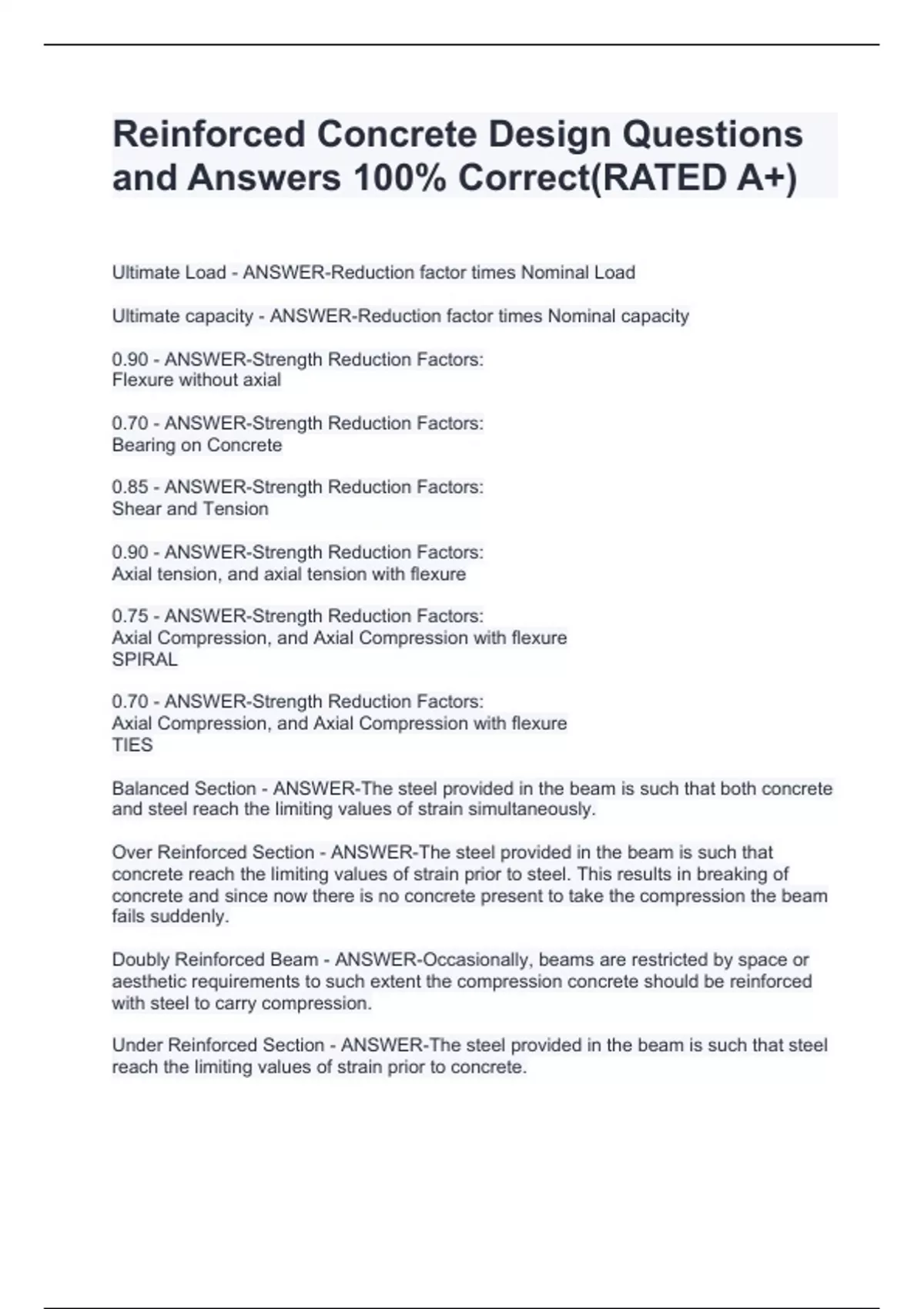 Reinforced Concrete Design Questions and Answers 100% Correct(RATED A+)