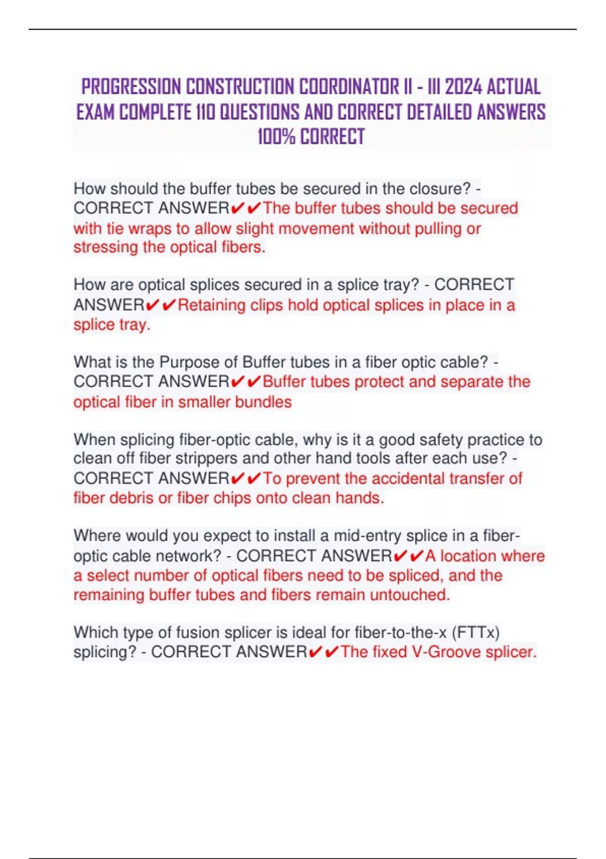 PROGRESSION CONSTRUCTION COORDINATOR II - III 2024 ACTUAL EXAM COMPLETE 110 QUESTIONS AND CORRECT DETAILED ANSWERS 100% CORRECT How should the buffer tubes be secured in the closu