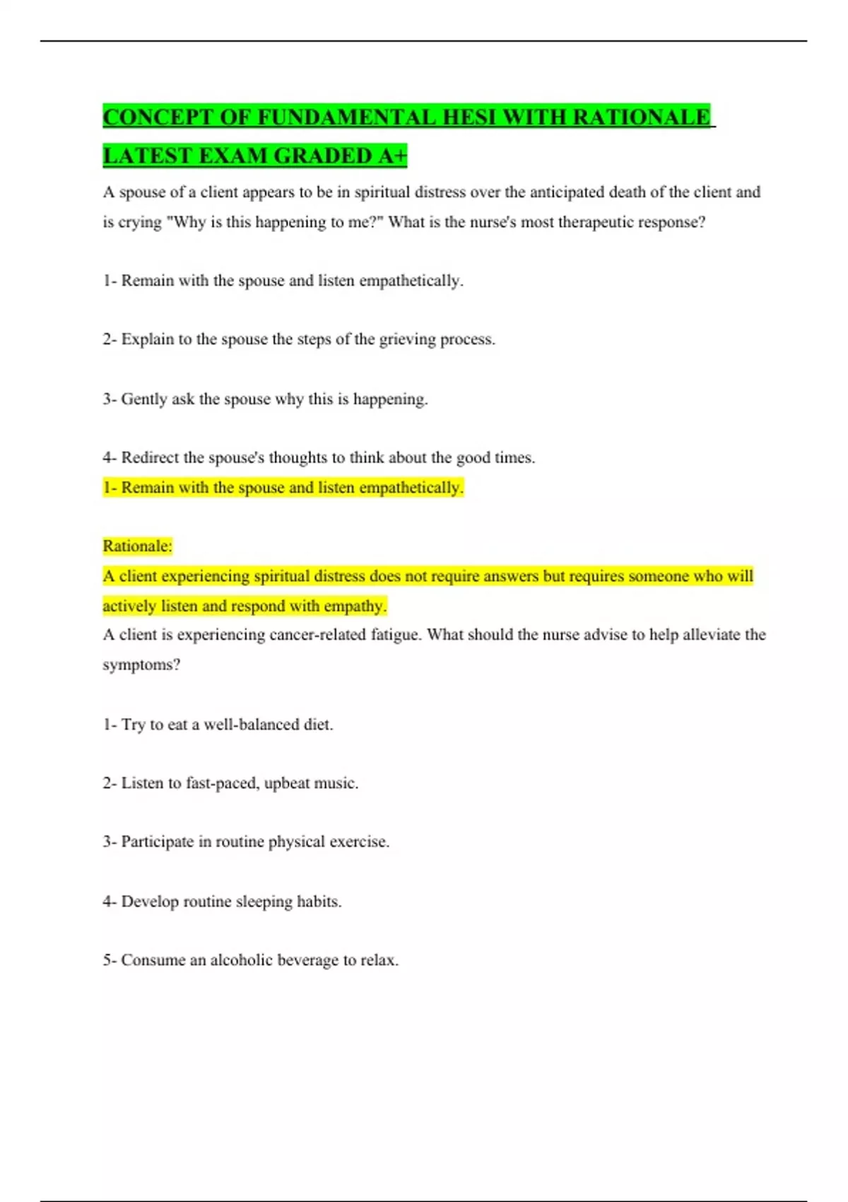 CONCEPT OF FUNDAMENTAL HESI WITH RATIONALE LATEST EXAM GRADED A+