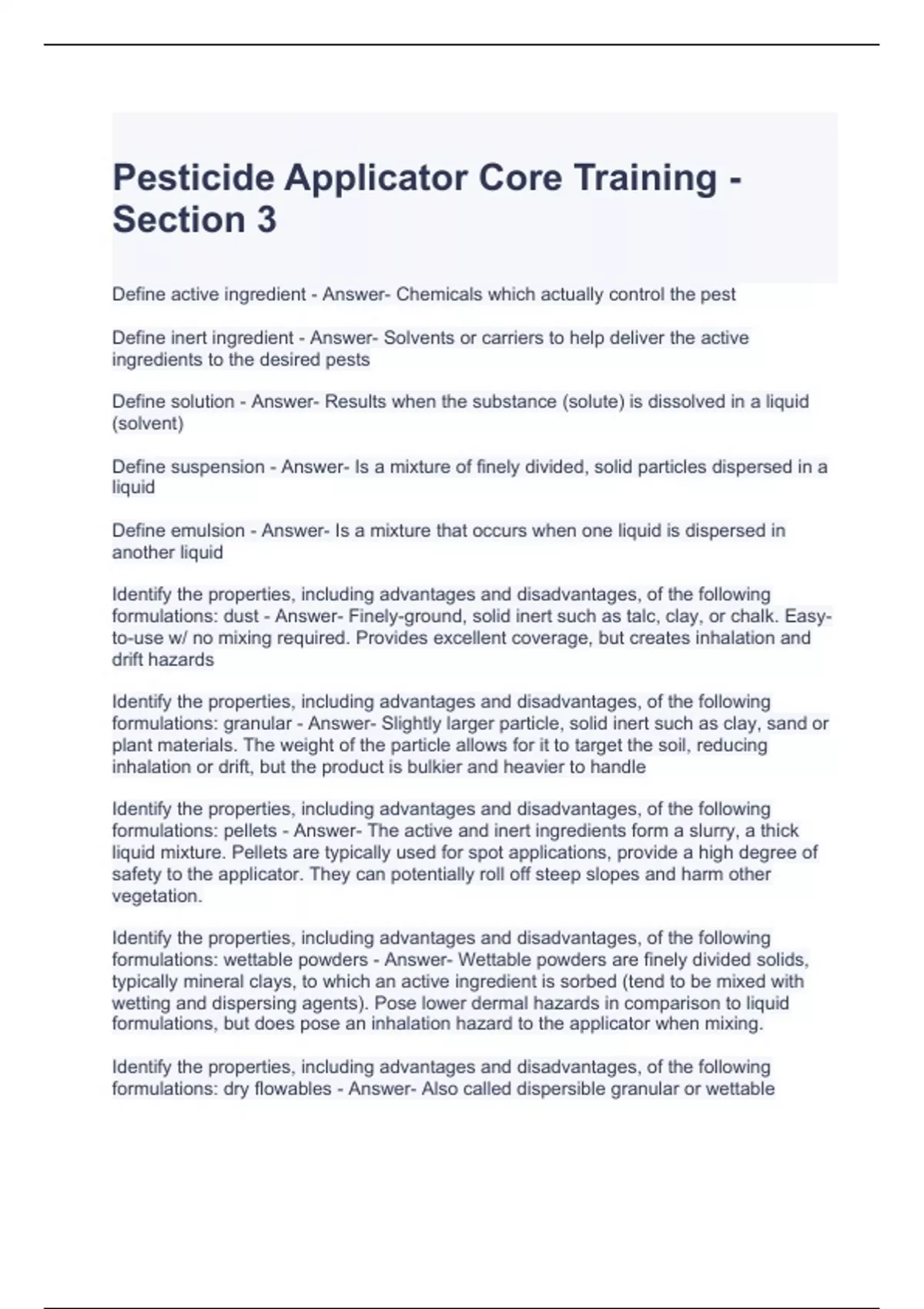 Pesticide Applicator Core Training - Section 3 Exam with correct Answers