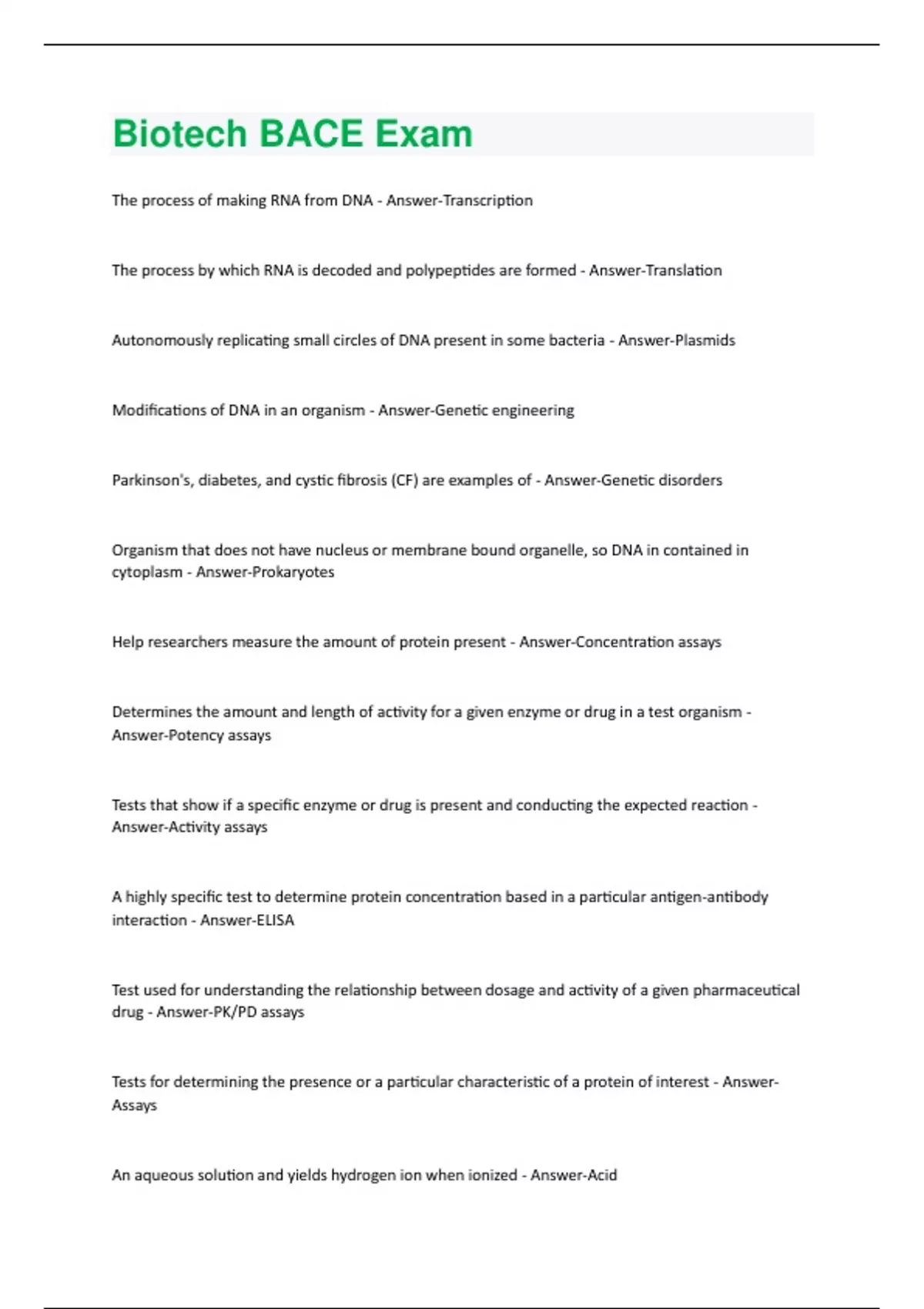 Biotech BACE Exam Questions With 100% Correct Answers.