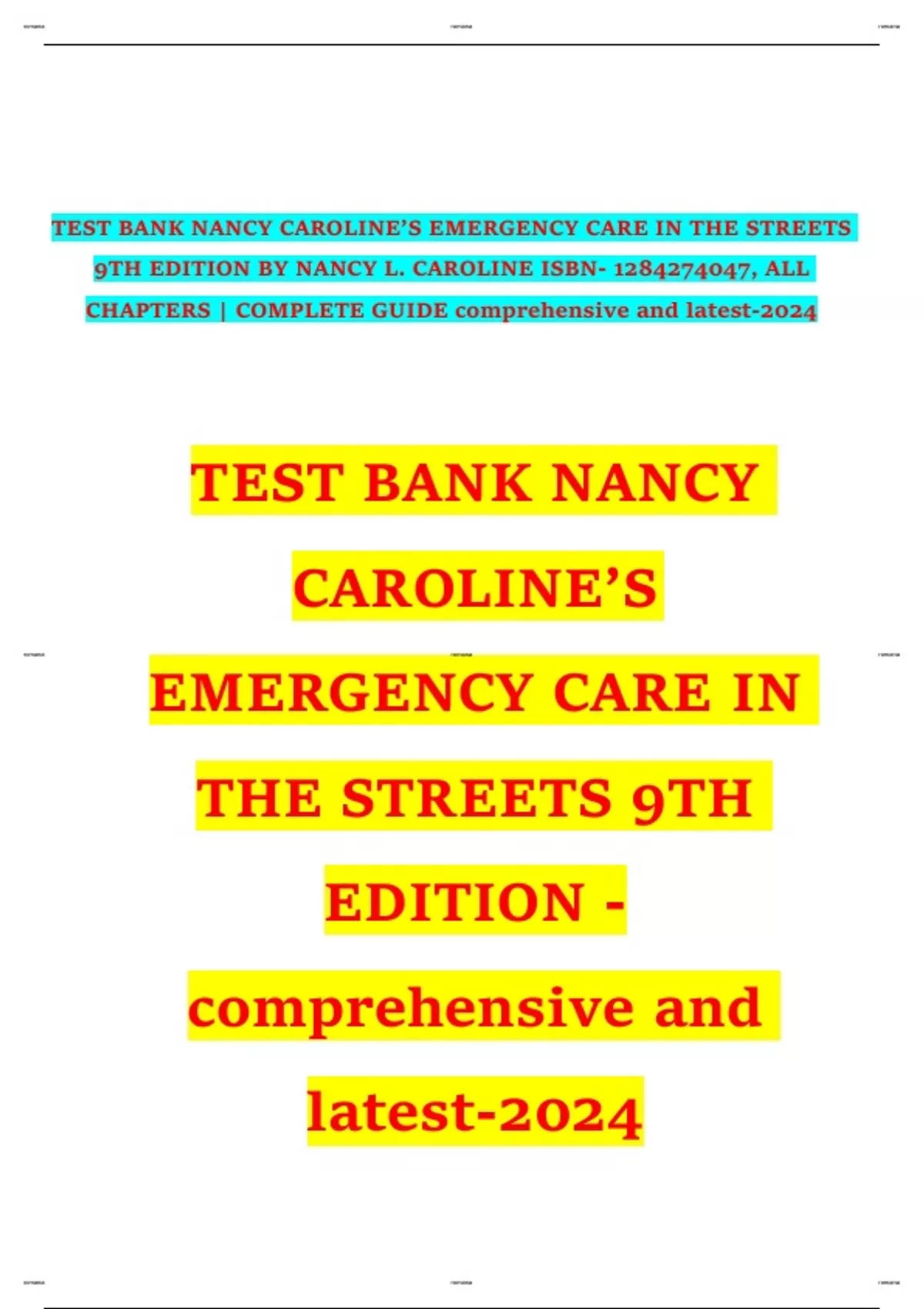 TEST BANK NANCY CAROLINE’S EMERGENCY CARE IN THE STREETS 9TH EDITION BY NANCY L. CAROLINE ISBN- 1284274047, ALL CHAPTERS | COMPLETE GUIDE A+ DOWNLOAD AND PASS