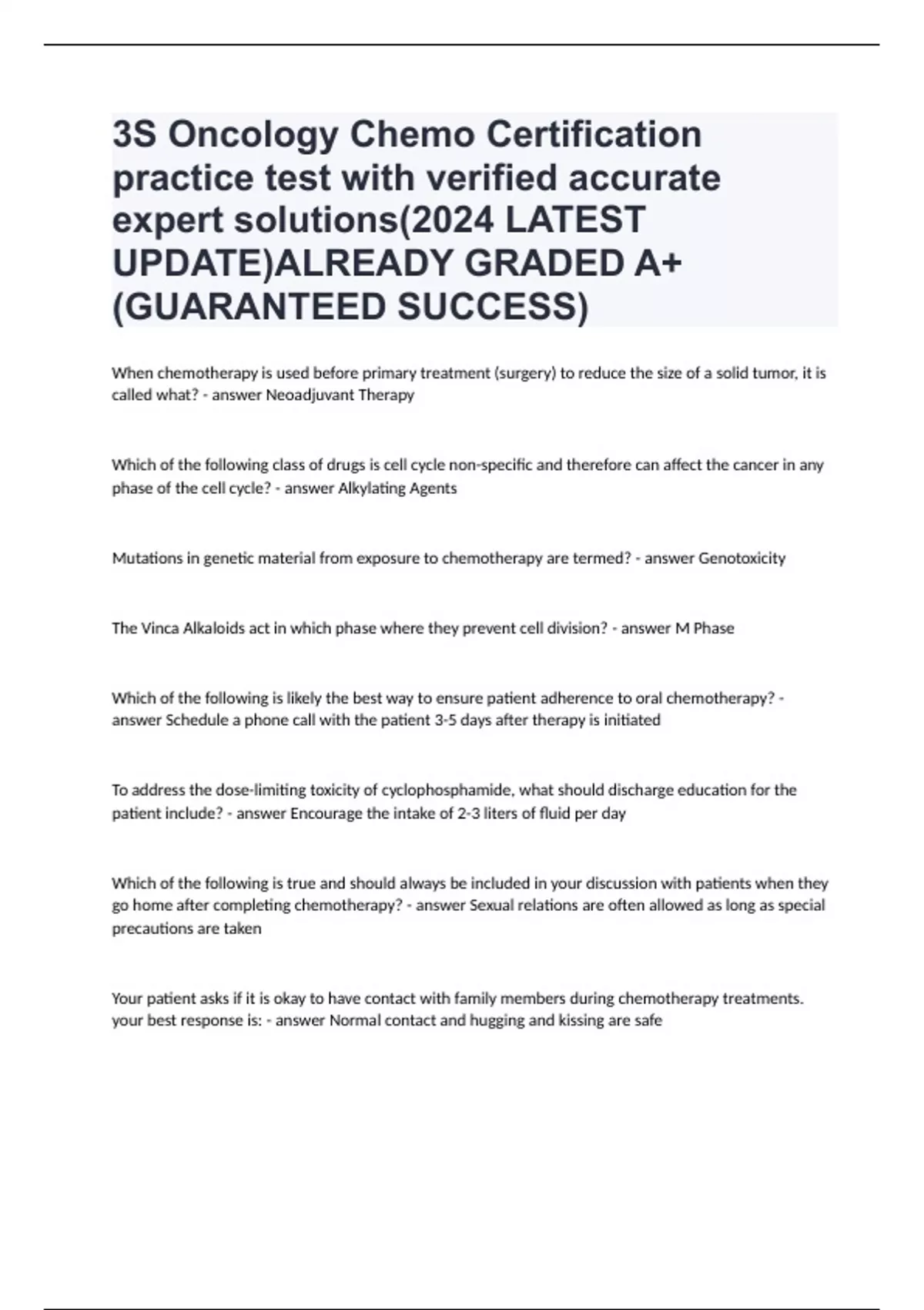3S Oncology Chemo Certification practice test with verified accurate expert solutions(2024 LATEST UPDATE)ALREADY GRADED A+(GUARANTEED SUCCESS)