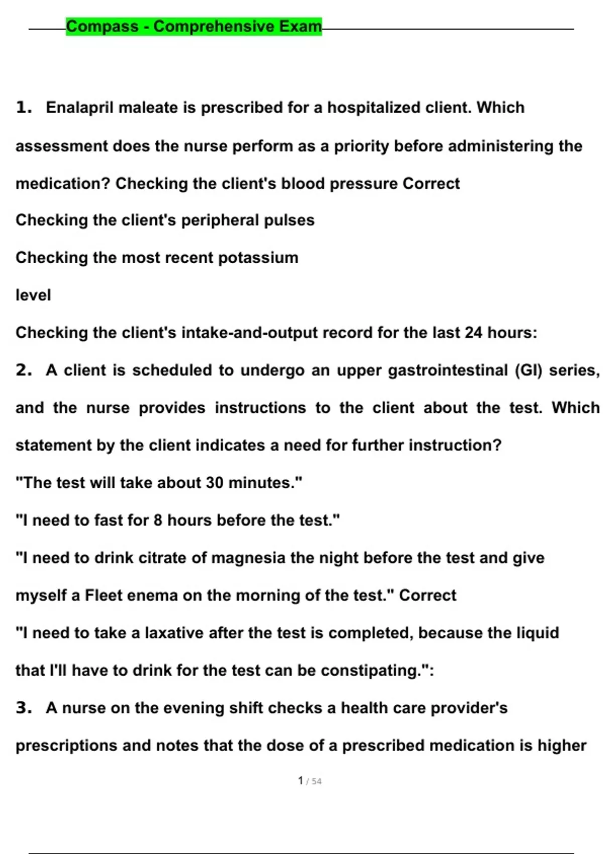 Compass - Comprehensive Exam Questions and Complete Rationales Graded A+