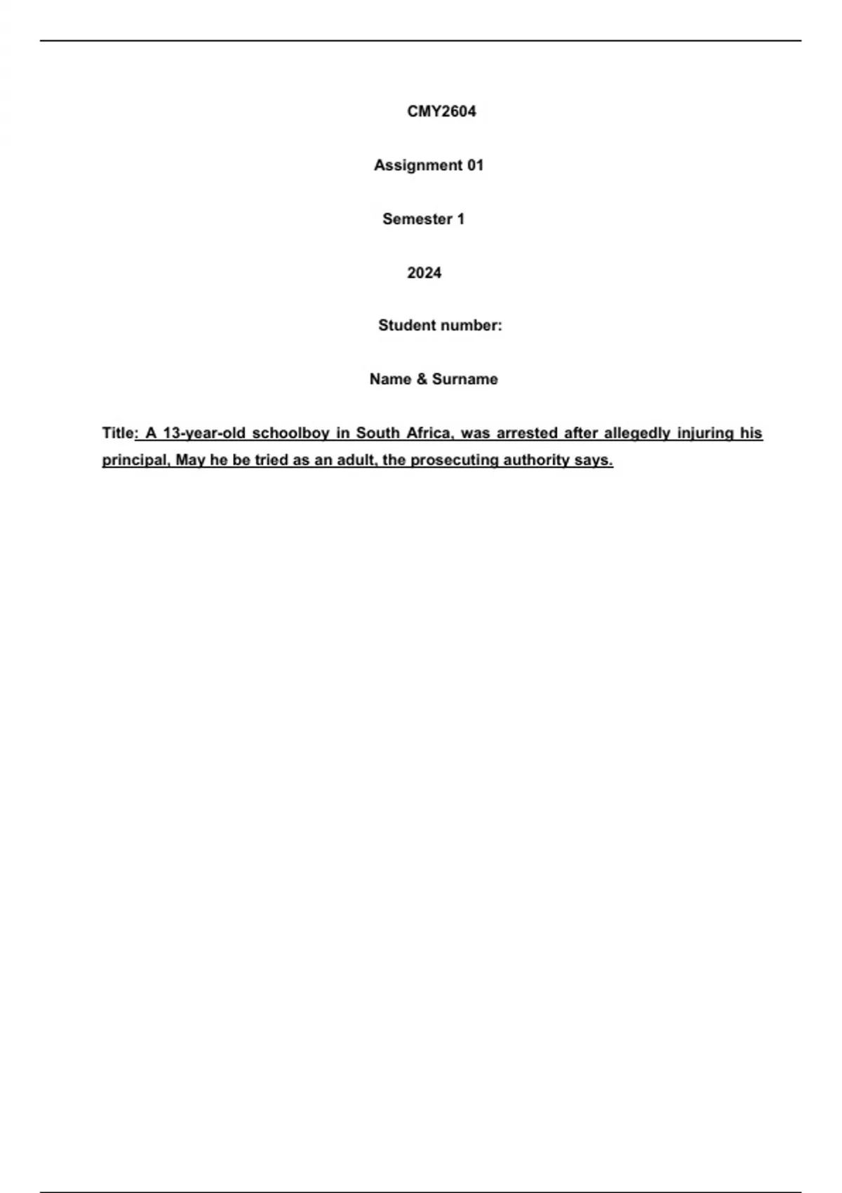 Title: A 13-year-old schoolboy in South Africa, was arrested after allegedly injuring his
