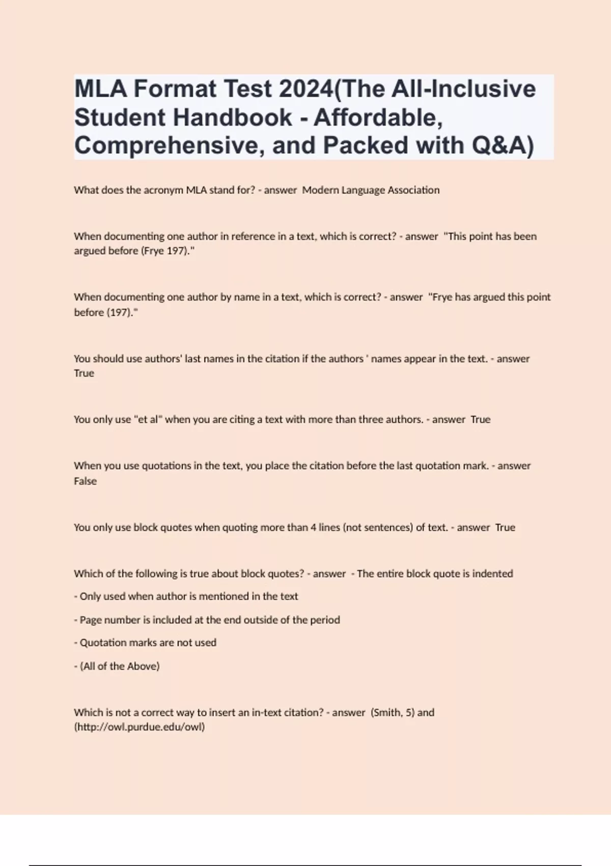 MLA Format Test 2024(The All-Inclusive Student Handbook - Affordable, Comprehensive, and Packed with Q&A)