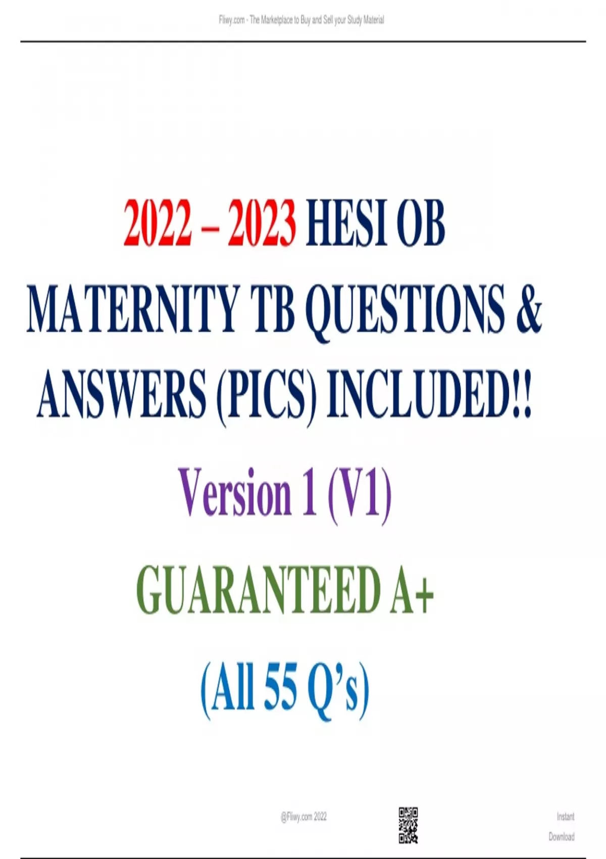 2022 – 2023 HESI OB MATERNITY TB QUESTIONS & ANSWERS (PICS) INCLUDED!! Version 1 (V1) GUARANTEED A+ (All 55 Q’s