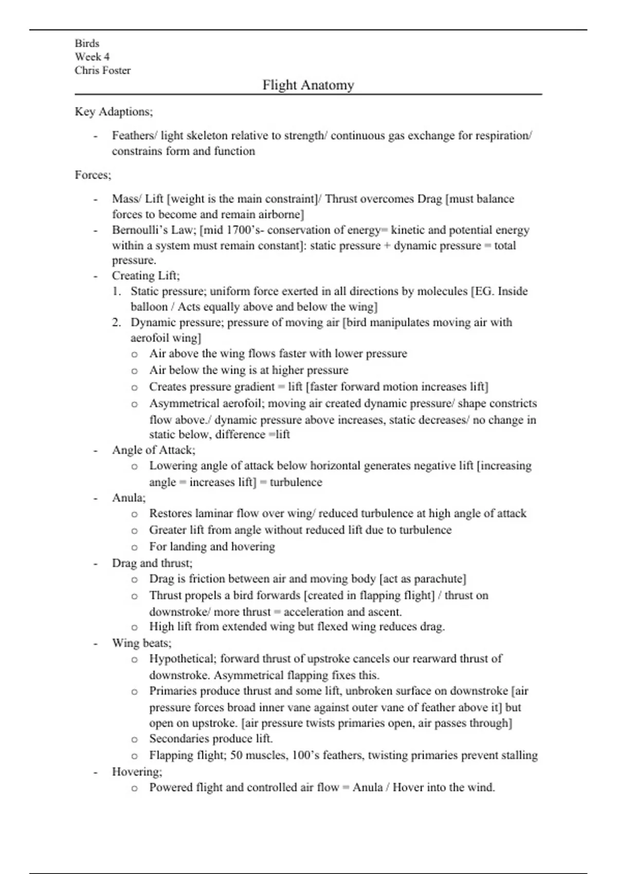 o Flapping flight; 50 muscles, 100’s feathers, twisting primaries prevent stalling