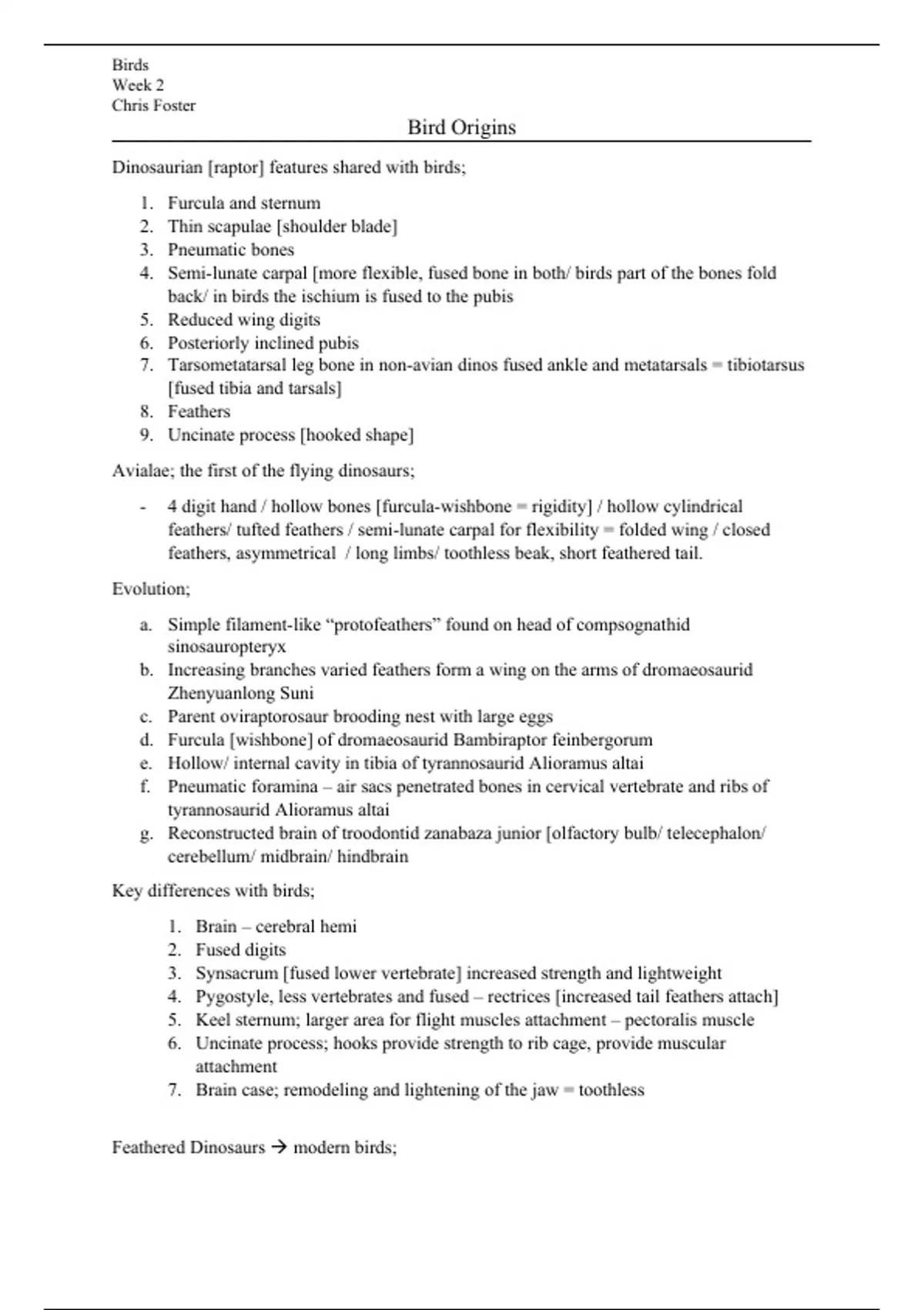 7. Tarsometatarsal leg bone in non-avian dinos fused ankle and metatarsals = tibiotarsus
