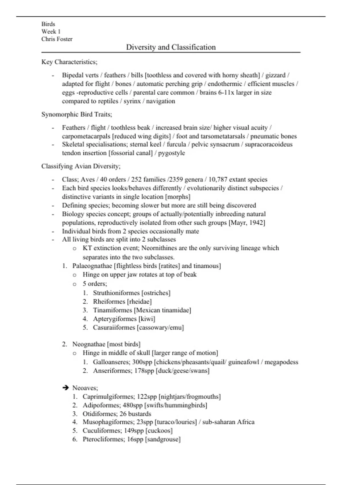 - Class; Aves / 40 orders / 252 families /2359 genera / 10,787 extant species
